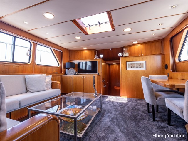 Dankzij een royale breedte van 5.40 meter en uitzonderlijk veel bergruimte is dit jacht uitermate geschikt voor permanente bewoning.