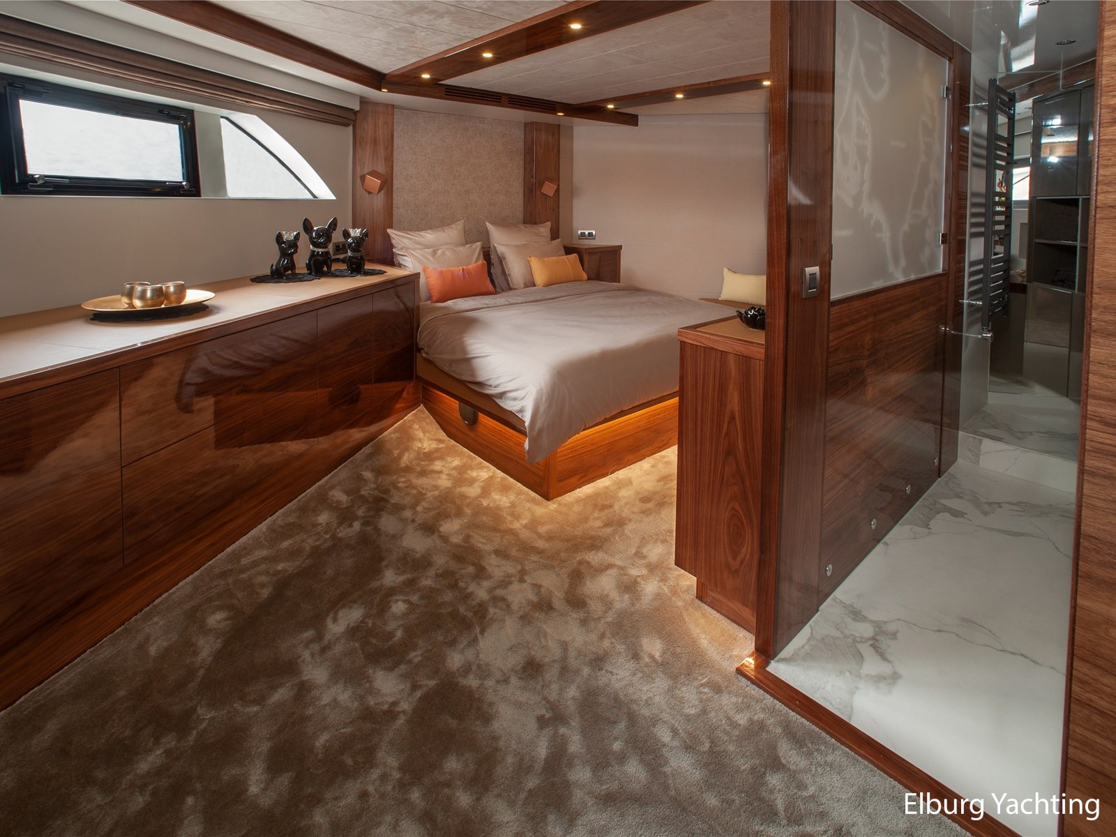 This Van den Hoven Executive 2100 is designed for those who want to enjoy long-term and comfortable stays on board. This yacht is build in 2019 features a single, very spacious master cabin amidships complete with a large walk-in closet and a full bathroom. The space in the forepeak currently serves as storage but is ready to be converted into a second bedroom if desired. In addition, a part of the walk-in closet can be converted into a third bedroom. Such requests can be discussed with the Van den Hoven shipyard.