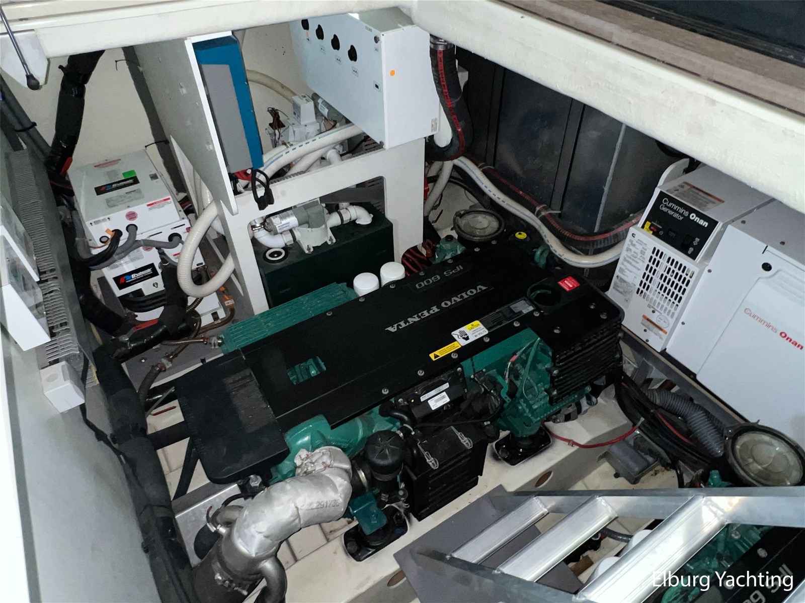 Zeer compleet uitgevoerde Monte Carlo 5S. De 5S-serie onderscheidt zich door stoere en sportieve looks en een hardtop met een buitenlounge op het dak. Vanaf het hydraulisch beweegbare zwemplateau wordt de open kuip betreden. De kuip heeft een geïntegreerde bank met bijbehorende kussens en vaste tafel. Aan SB zijde in de kuip bevindt zich de toegang tot de extra hut (crew cabin) in het achterschip, deze hut is tevens te gebruiken als extra opbergruimte. Via de open kuip stap je eenvoudig op naar het gangboord met goede houvast rondom voor een veilige loop over het dek. Op het voordek zijn twee geïntegreerde klapbare zonnebedden aanwezig. Via een geïntegreerde trap vanuit de kuip betreed je de buitenlounge op het dak. Deze buitenlounge heeft een in hoogte verstelbare tafel waarmee er ook een groot zonnebed gecreëerd kan worden. De salon en de kuip laten zich verbinden door drie grote glazen wegklapbare deuren. De kombuis is gesitueerd bij de ingang van de salon. Door het openen van de salondeuren wordt de kombuis volledig betrokken bij de kuip. De salon gecombineerd met de stuurstand bevindt zich op dekniveau. Via de de grote ramen rondom (getint) is er goed zicht en komt er veel licht binnen. Het buitengevoel naar binnen brengen kan door het openen van het grote elektrisch bedienbare schuifdak en twee zijruiten. Benedendeks bevinden zich drie hutten voor in totaal zes personen. De 2-persoons eigenaarshut bevindt zich midscheeps over de volledige breedte van het schip. Deze hut is voorzien van eigen sanitair en-suite. Aan stuurboordzijde bevindt zich een 1 x 2 persoons stapelbed en in de voorhut een 2-persoons Frans bed. Centraal is er een tweede badkamer met douche en toilet gesitueerd. Deze Monte Carlo 5S is verder voorzien van: achteruitkijk camera via plotterscherm, elektrisch bedienbare gangway, kuip afsluitbaar met deur naar zwemplateau, TV op lift in salon, Volvo ship/motormanagement display bij stuurstand, Fusion audiosysteem, trimtabs, Yachtcontroller afstandsbediening om te manoeuvreren middels de IPS aandrijving + boegschroef.