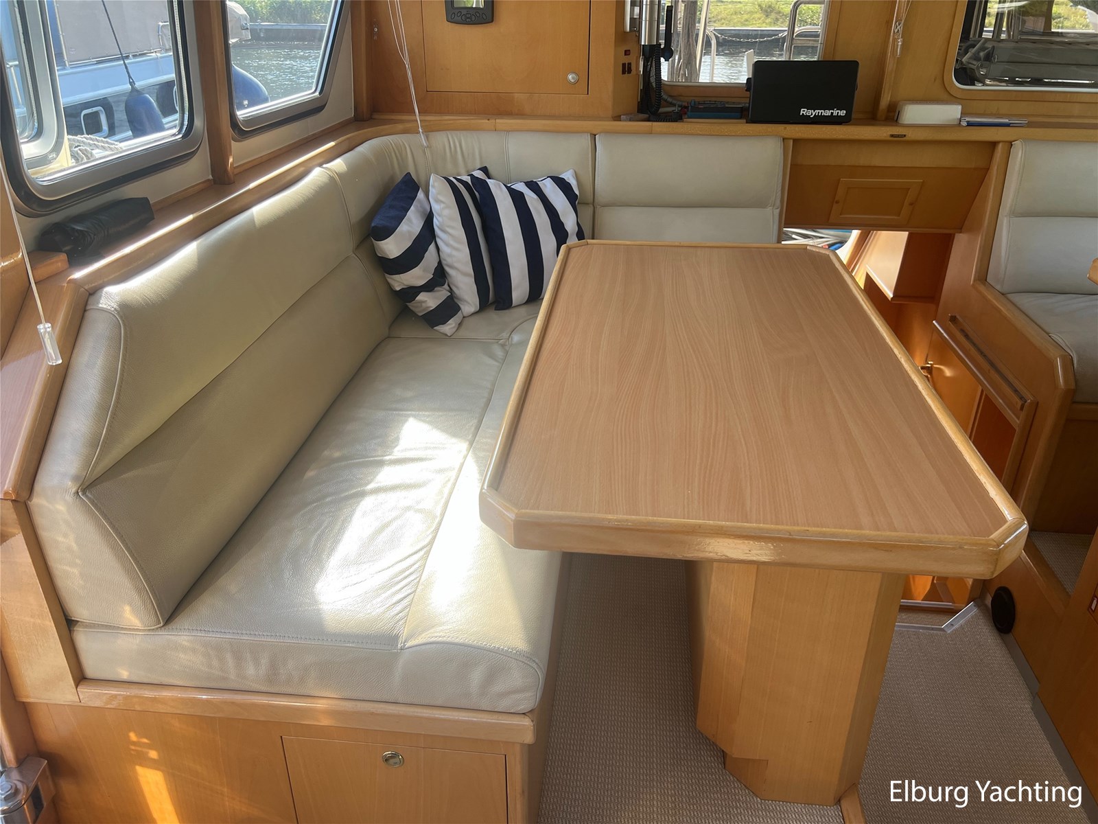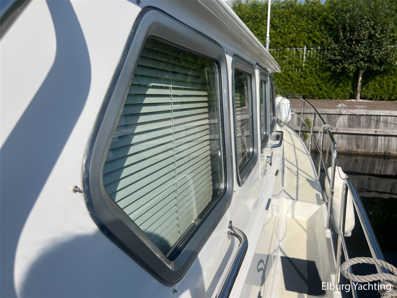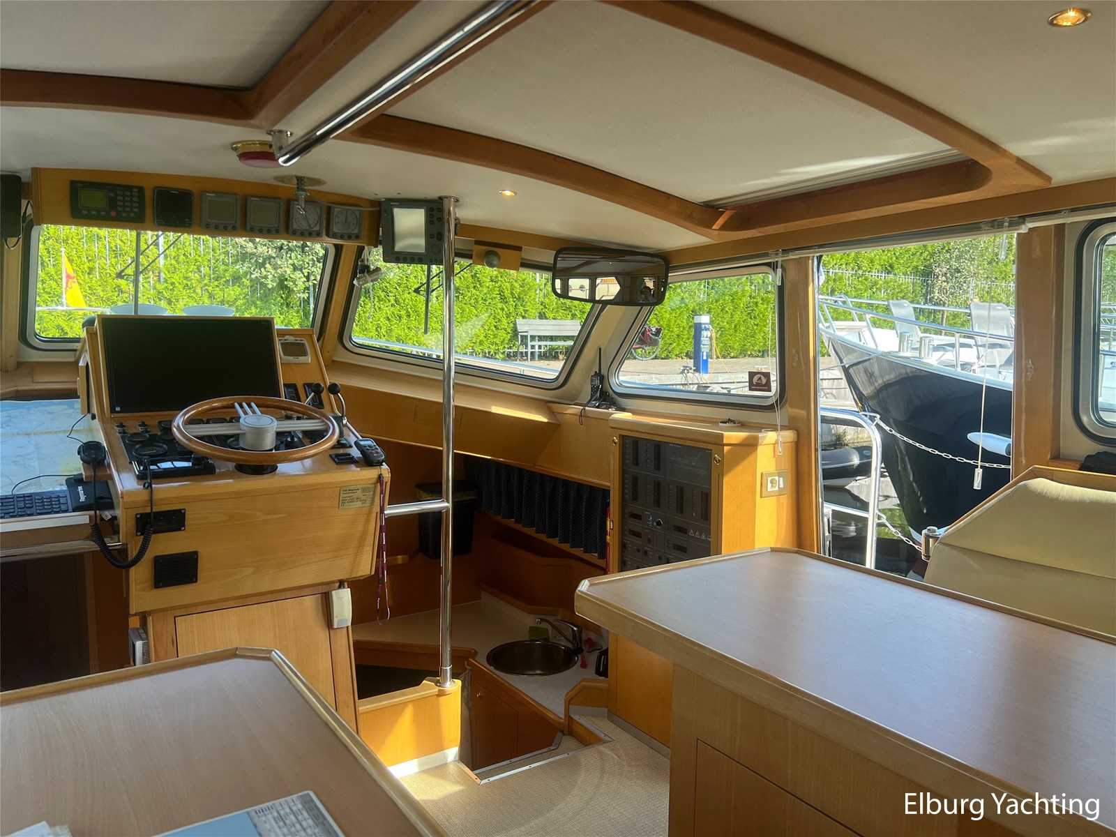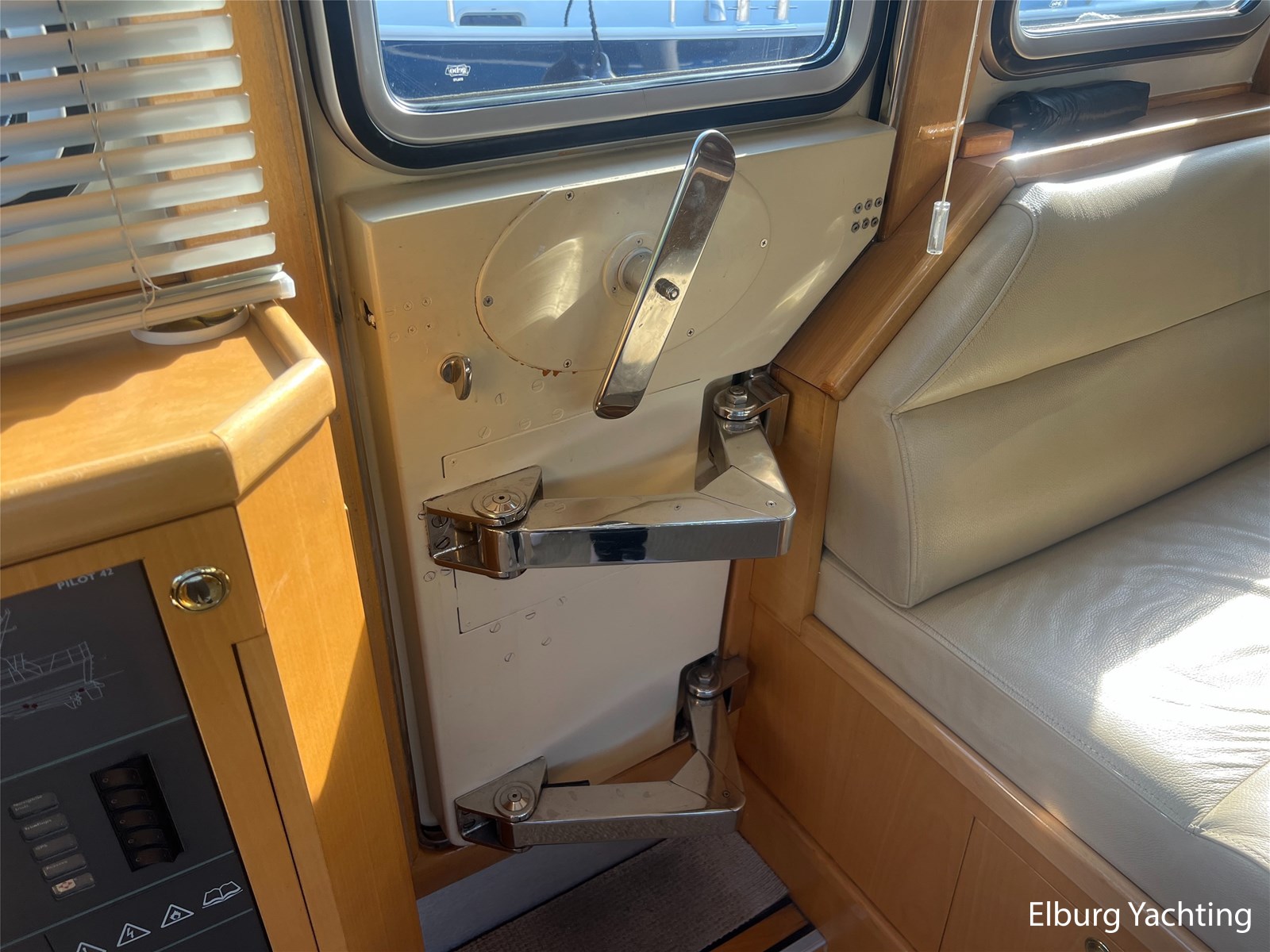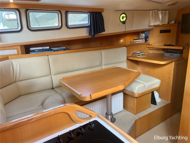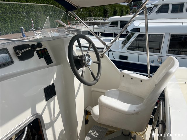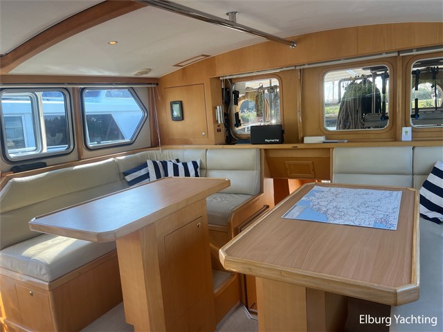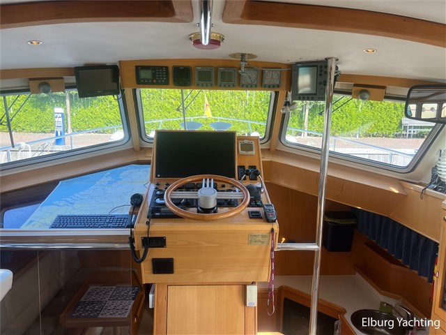 This unique Pilot 42 is offered by her original owner. She has maintained her condition through continuous improvements and maintenance over the years. The boat is characterized by its unique layout, which allows for both indoor and outdoor steering. A side door leads from the saloon to the gangway for easy mooring. The aft section is spacious with ample seating and storage. The aft deck is fully covered by a removable aluminum fixed roof. The aft cabin has its own entrance and private bathroom. With its 2 x 260 hp engines, the boat has a long range, making it ideal for both slow and fast sailing. Once arrived, the Yacht Control remote control makes mooring a breeze. This Pilot also comes with: hull painted in 2020, underwater hull blasted and rebuilt in 2020, deck painted in 2023, Raymarine plotter in 2023, Raymarine VHF radio in 2023, new propellers in 2022, Munters MG dehumidifier with hygrostat that provides dry air throughout the ship, double stainless steel railings, double stainless steel bollards, bimini over the helm station, stainless steel fender holders, stainless steel handrails, folding radar mast, seaworthy sheltered cockpit, Tack Ticks wind set, 1000-watt searchlight, manually installed gangway, insulated hull, slats, and trim tabs.