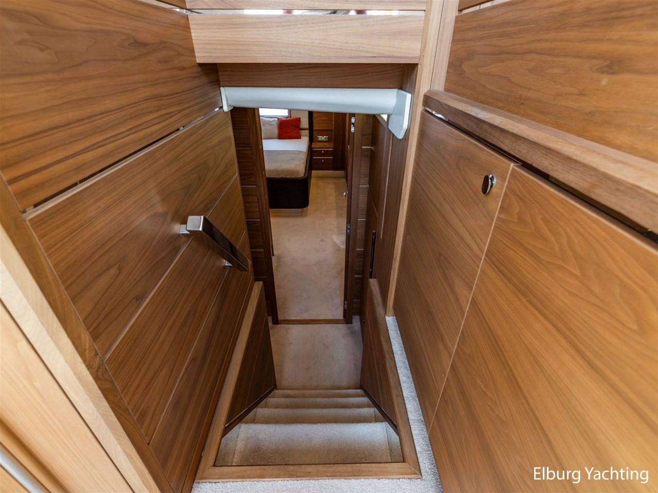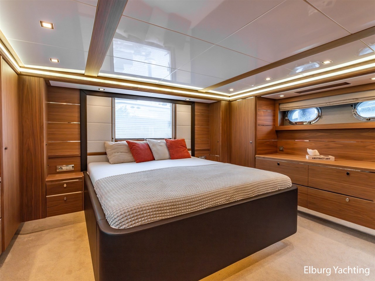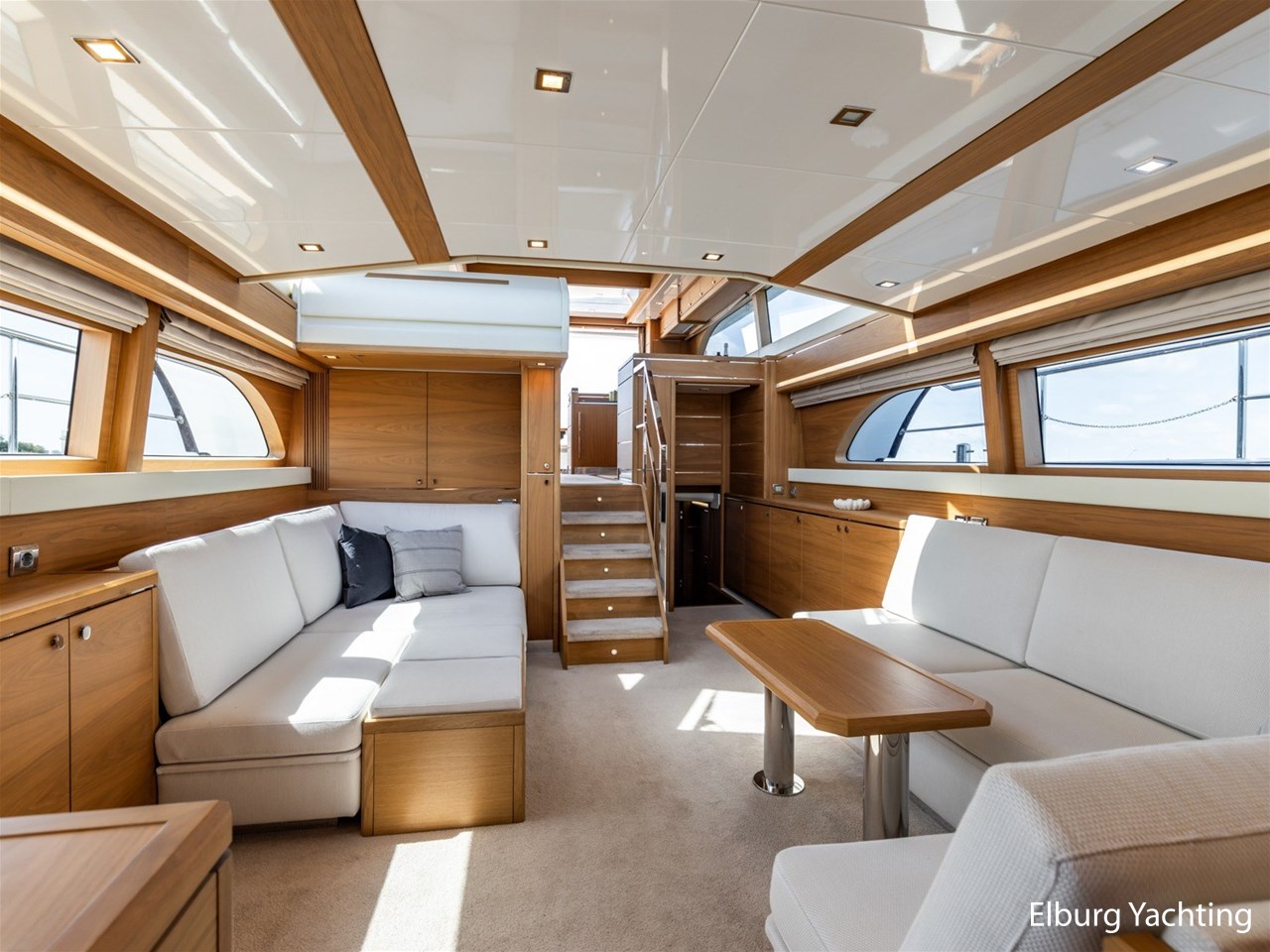 - Modern interior with Nutwood veneer with stainless steel trim and high gloss ceiling panels