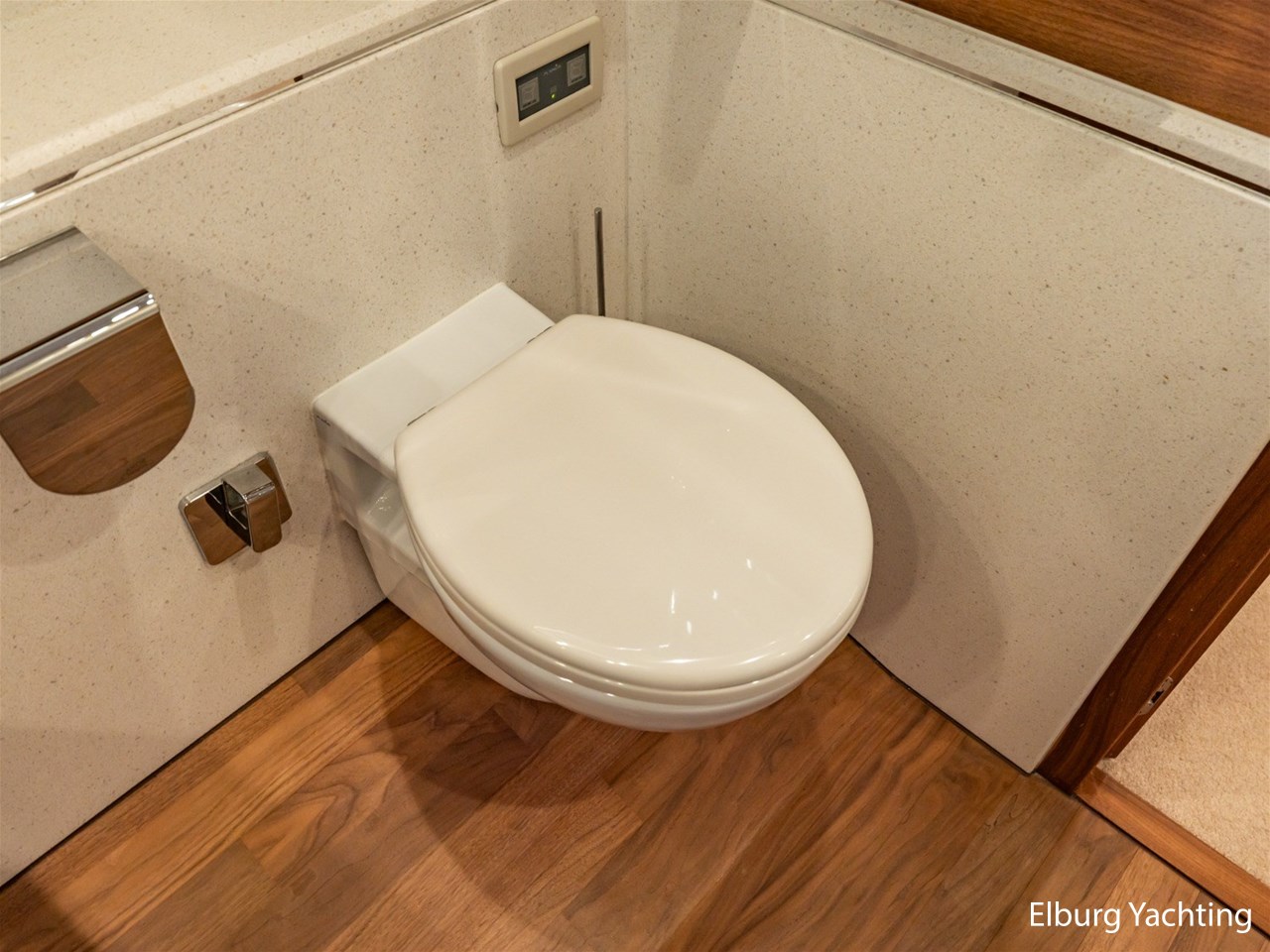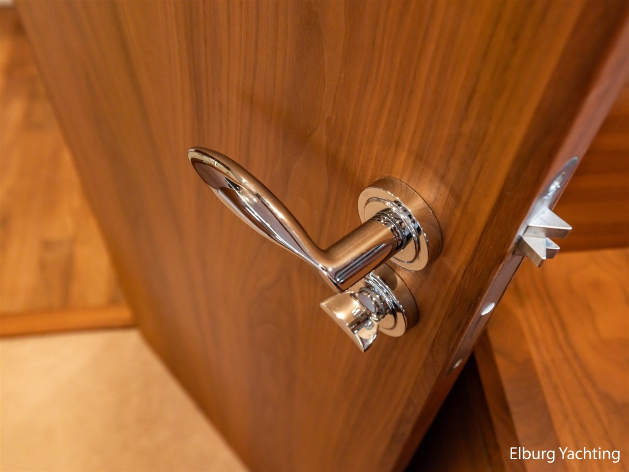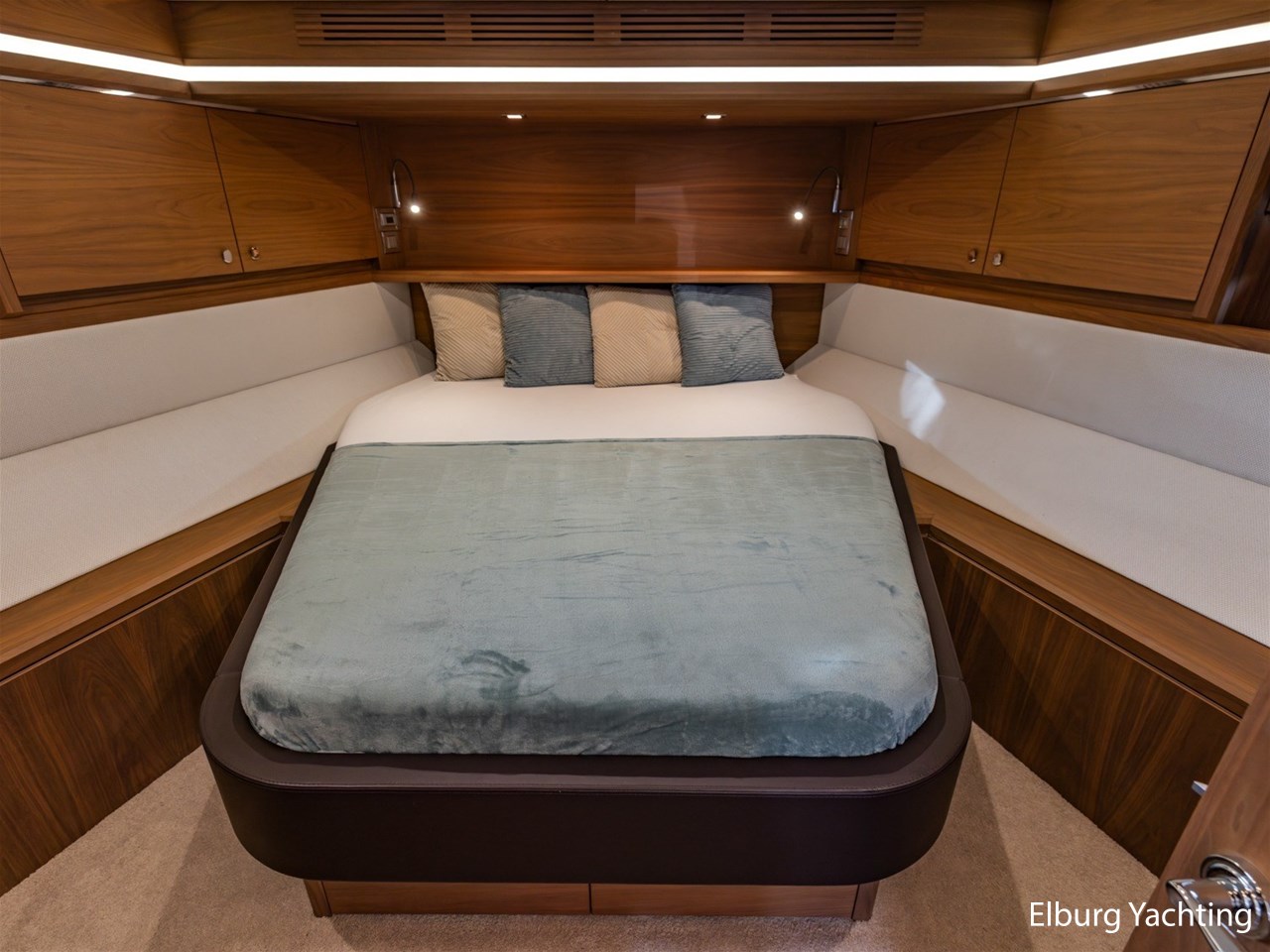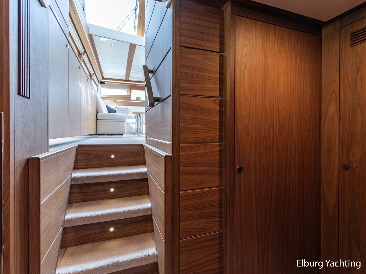 - Modern interior with Nutwood veneer with stainless steel trim and high gloss ceiling panels