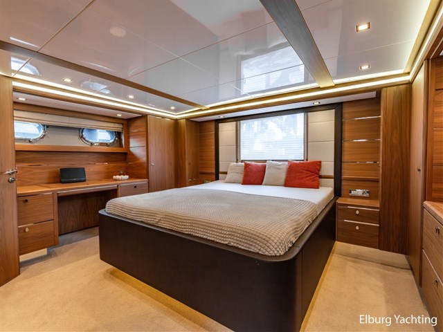 It is a unique spacious vessel, very suitable for residential use or long distance travels. She is equipped with Kabola HR500-combi central heating, floor heating, air conditioning, central vacuum system, Maretron ship information system, fuel polisher, washing machine & dryer (Miele), window heating in wheelhouse, camera system outside for mooring, automatic fire extinguishing system in engine room, Liebherr wine climate cabinet, 3 x Simrad touch screen, wooden floor in kitchen, dishwasher (Miele), waste compacter Braan, 3 x double-armed windscreen wipers, Plissés throughout the ship, anti-rattle locks, window in mirror, spacious owner's cabin with 2 pers. king-size bed, LED TV, dressing table, design radiator in bathroom, sun awning over aft deck, 5-blade propeller, stainless steel anchor chain, stainless steel. folding doors to aft deck, stainless steel table legs, stainless steel sea ??rail, stainless steel bollards, stainless steel jar lids, stainless steel flagpole. Jabsco searchlight, Kahlenberg air horns, LED lighting on outside steps, mosquito nets, 2 x cameras, underfloor heating, 1 x Bose “Lifestyle 48” DVD surround system in saloon/wheelhouse. 1 x Bose “roommate” in owner's cabin, 1 x UMTS wireless internet system, incl. WIFI. E-marine” alarm system with certified GPS tracker and alarm. 2 x capstans, Muir Wrc3500 anchor winch with approx. 100 kg pool anchor, outdoor shower on bathing platform incl. hot water, hydraulic crane for dinghy Steelhead ES1000 on bathing platform incl. tender support.