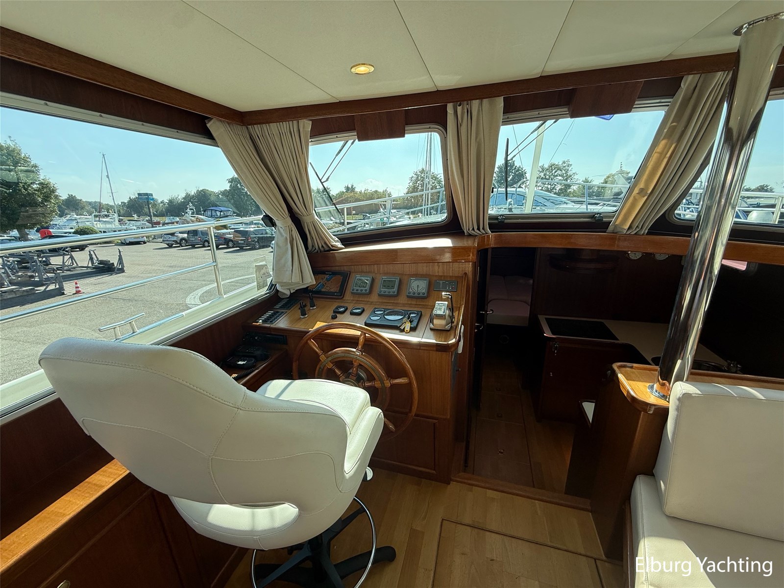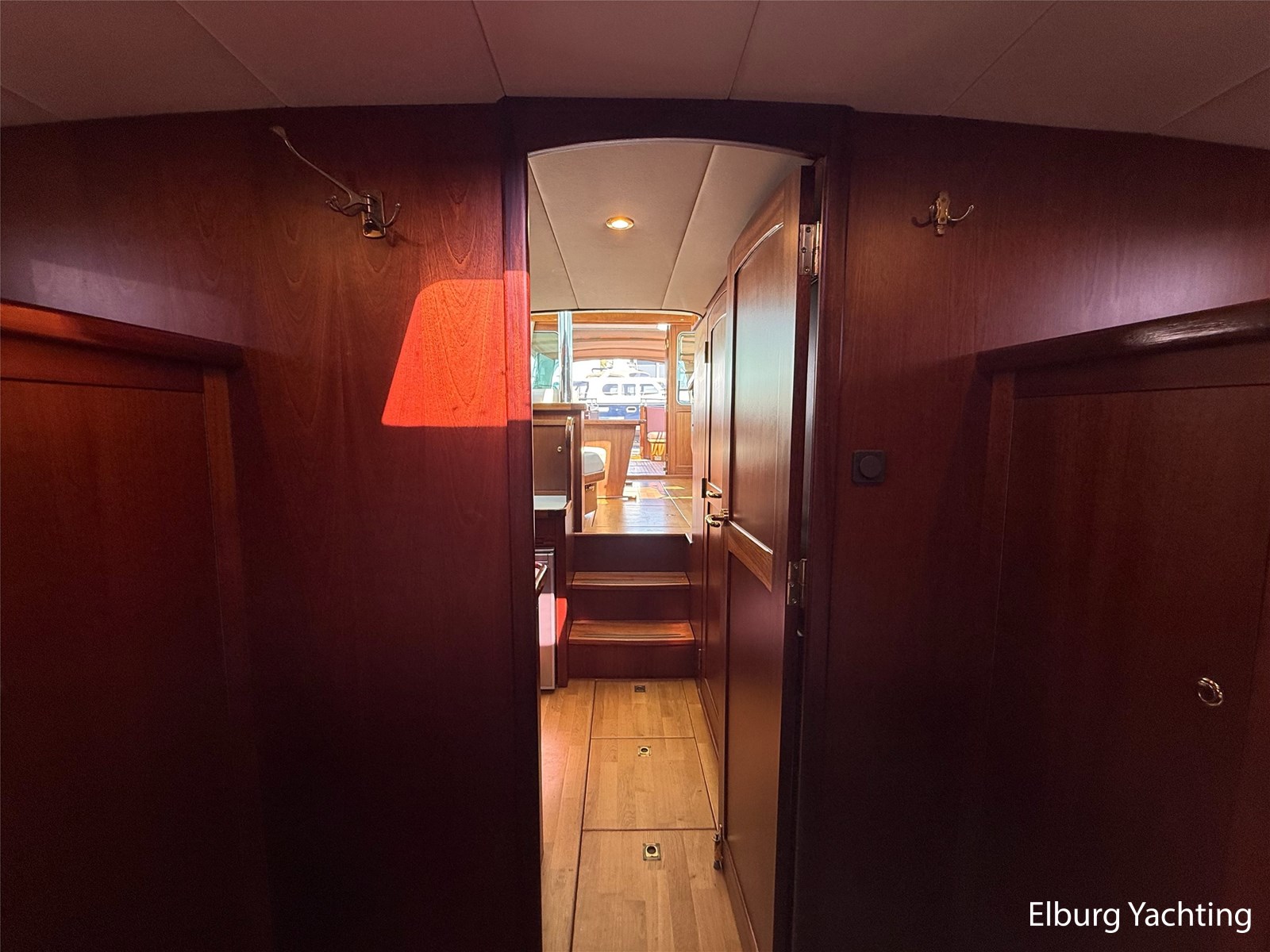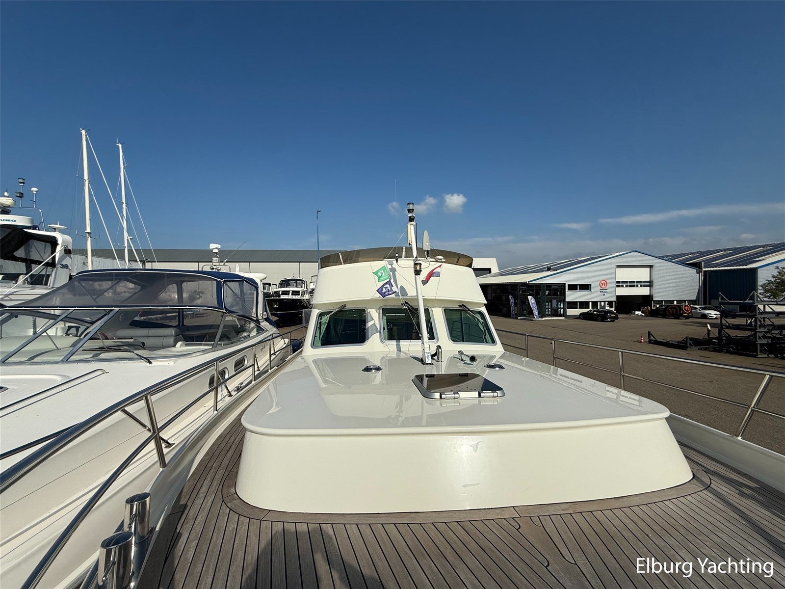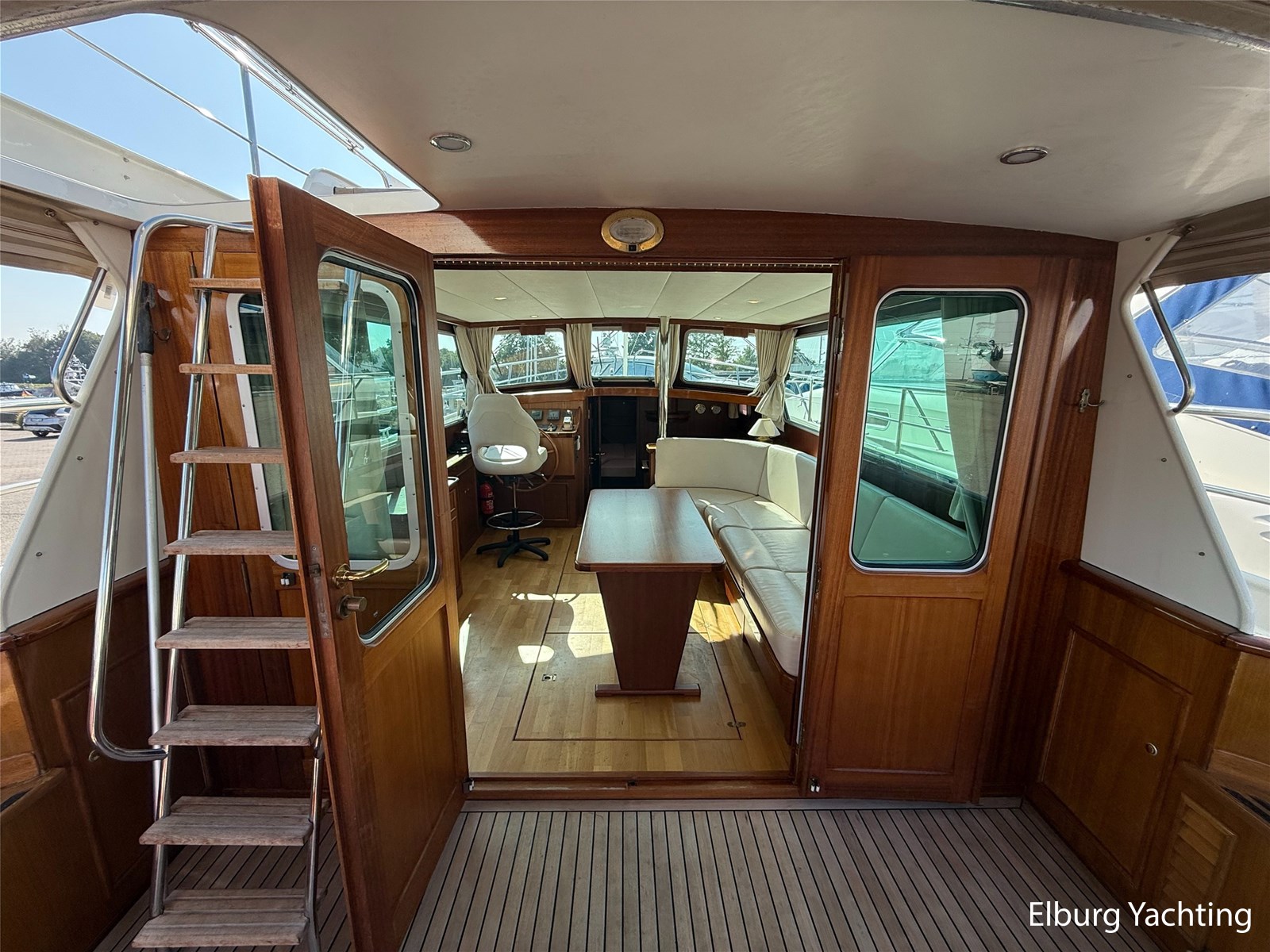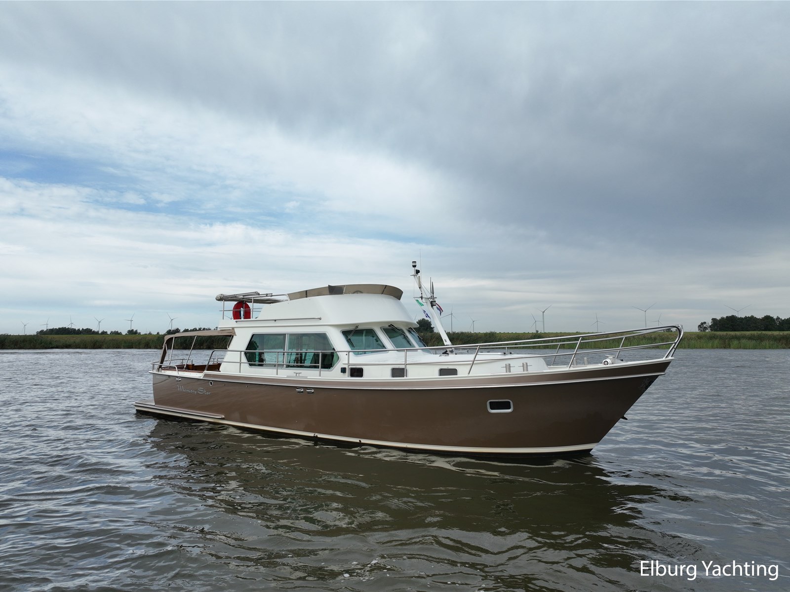 De Pikmeerkruiser 12.50 Exclusive Flybridge is een stijlvol en compleet uitgerust motorjacht met een aantrekkelijke indeling en praktische vaareigenschappen. Het schip beschikt over een royaal zwemplateau met spiegeldeur, dat direct toegang biedt tot de ruime open kuip. Deze kuip is afsluitbaar en dankzij openslaande deuren naadloos verbonden met de salon, waardoor een aangename leefruimte ontstaat. De salon is voorzien van een klassiek scheepsinterieur met mahoniehouten afwerking, een houten vloer en recent geplaatste premium gordijnen. Middels twee trappen naar beneden komt u vanuit de salon in de open kombuis, waar zich tevens de gescheiden douche- en toiletruimte en een slaapvertrek in het voorschip bevinden. De voorhut is uitgerust met een V-bed, dat eenvoudig omgebouwd kan worden tot een groot tweepersoonsbed. De voortstuwing wordt verzorgd door een 159 pk sterke Vetus Deutz DT-64 6-cilinder dieselmotor. Technisch is het jacht uitgerust met een natte uitlaat, watergesmeerde schroefas (diameter 45 mm), een gesloten koelsysteem, twee roerstandaanwijzers en dubbele elektronische motorbediening. Zowel het motoronderhoud als het onderhoud aan de generator zijn uitgevoerd in 2025. Daarnaast is antifouling aangebracht in 2024. Het jacht beschikt over twee stuurstanden (binnen en op de flybridge), een aluminium klapbare mast en comfortverhogende uitrusting zoals airconditioning, centrale verwarming, een wasmachine, een generator en drie ruitenwissers. De machinekamer is bereikbaar via geïsoleerde vloerluiken in de salon. Aan dek zijn diverse RVS-details toegepast, waaronder een dubbele RVS-reling en een RVS-handrail langs de opbouw, wat zorgt voor een veilige loop rond het gangboord. Het met teak belegd zwemplateau en flybridge draagt bij aan het luxe karakter van dit schip. De flybridge is verder voorzien van een bimini. Met een doorvaarthoogte van circa 3,20 meter, een kruissnelheid van circa 10–12 km/u en een maximumsnelheid van circa 18 km/u is dit motorjacht geschikt voor uiteenlopende vaargebieden, zowel op binnenwateren als voor langere tochten.