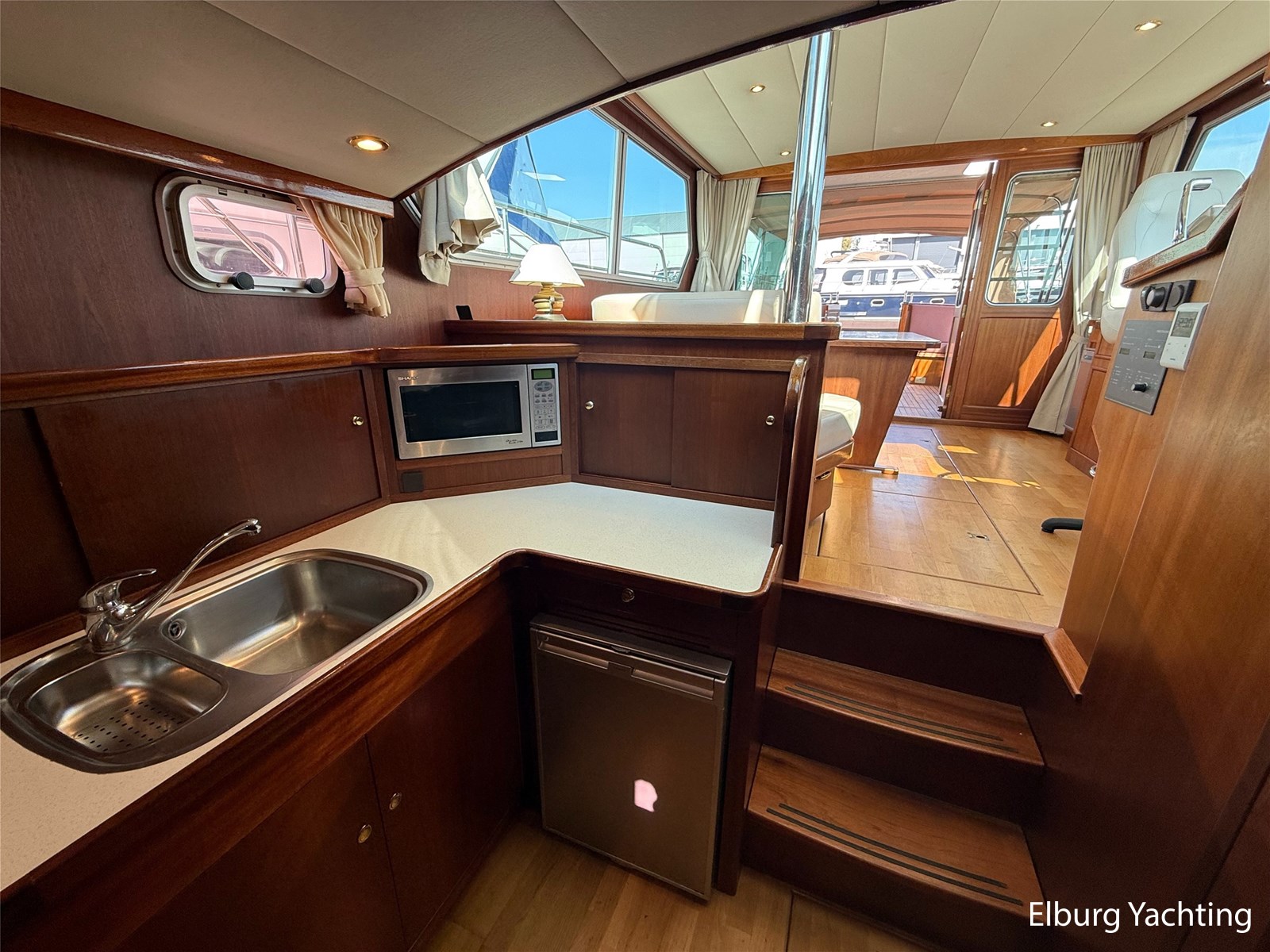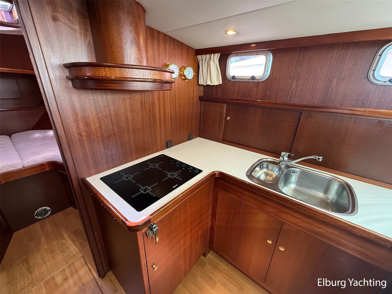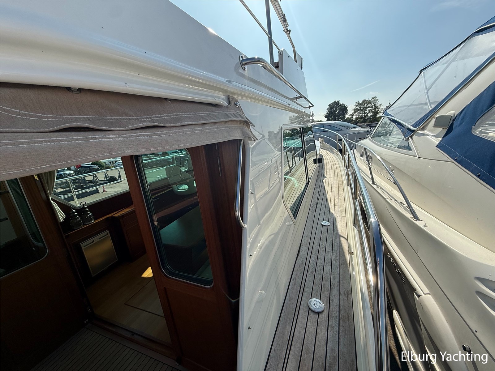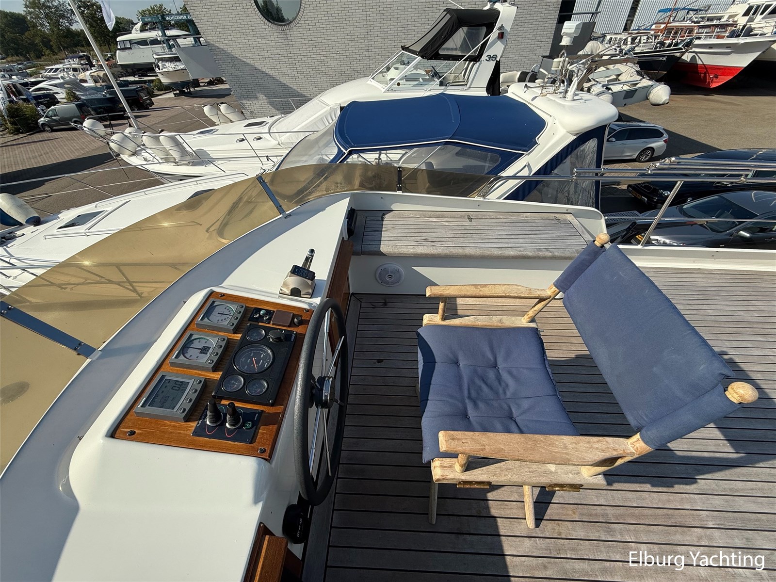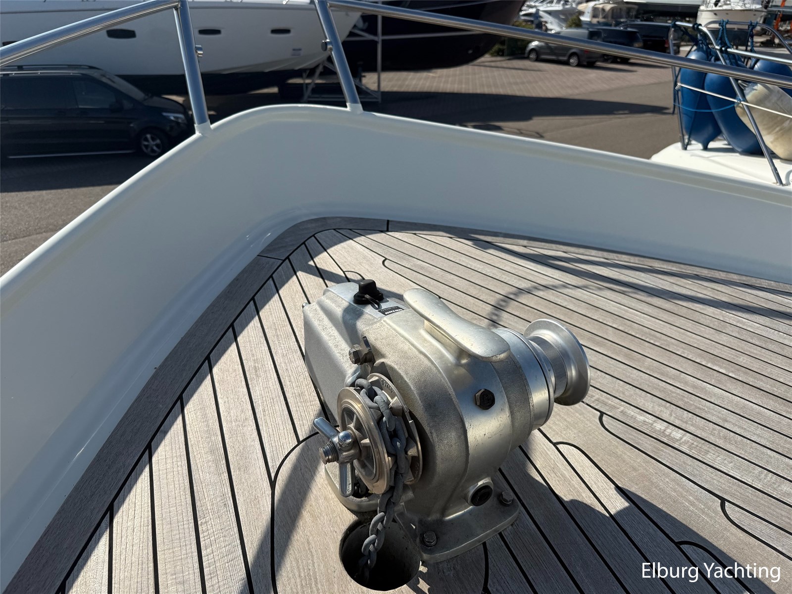 De Pikmeerkruiser 12.50 Exclusive Flybridge is een stijlvol en compleet uitgerust motorjacht met een aantrekkelijke indeling en praktische vaareigenschappen. Het schip beschikt over een royaal zwemplateau met spiegeldeur, dat direct toegang biedt tot de ruime open kuip. Deze kuip is afsluitbaar en dankzij openslaande deuren naadloos verbonden met de salon, waardoor een aangename leefruimte ontstaat. De salon is voorzien van een klassiek scheepsinterieur met mahoniehouten afwerking, een houten vloer en recent geplaatste premium gordijnen. Middels twee trappen naar beneden komt u vanuit de salon in de open kombuis, waar zich tevens de gescheiden douche- en toiletruimte en een slaapvertrek in het voorschip bevinden. De voorhut is uitgerust met een V-bed, dat eenvoudig omgebouwd kan worden tot een groot tweepersoonsbed. De voortstuwing wordt verzorgd door een 159 pk sterke Vetus Deutz DT-64 6-cilinder dieselmotor. Technisch is het jacht uitgerust met een natte uitlaat, watergesmeerde schroefas (diameter 45 mm), een gesloten koelsysteem, twee roerstandaanwijzers en dubbele elektronische motorbediening. Zowel het motoronderhoud als het onderhoud aan de generator zijn uitgevoerd in 2025. Daarnaast is antifouling aangebracht in 2024. Het jacht beschikt over twee stuurstanden (binnen en op de flybridge), een aluminium klapbare mast en comfortverhogende uitrusting zoals airconditioning, centrale verwarming, een wasmachine, een generator en drie ruitenwissers. De machinekamer is bereikbaar via geïsoleerde vloerluiken in de salon. Aan dek zijn diverse RVS-details toegepast, waaronder een dubbele RVS-reling en een RVS-handrail langs de opbouw, wat zorgt voor een veilige loop rond het gangboord. Het met teak belegd zwemplateau en flybridge draagt bij aan het luxe karakter van dit schip. De flybridge is verder voorzien van een bimini. Met een doorvaarthoogte van circa 3,20 meter, een kruissnelheid van circa 10–12 km/u en een maximumsnelheid van circa 18 km/u is dit motorjacht geschikt voor uiteenlopende vaargebieden, zowel op binnenwateren als voor langere tochten.