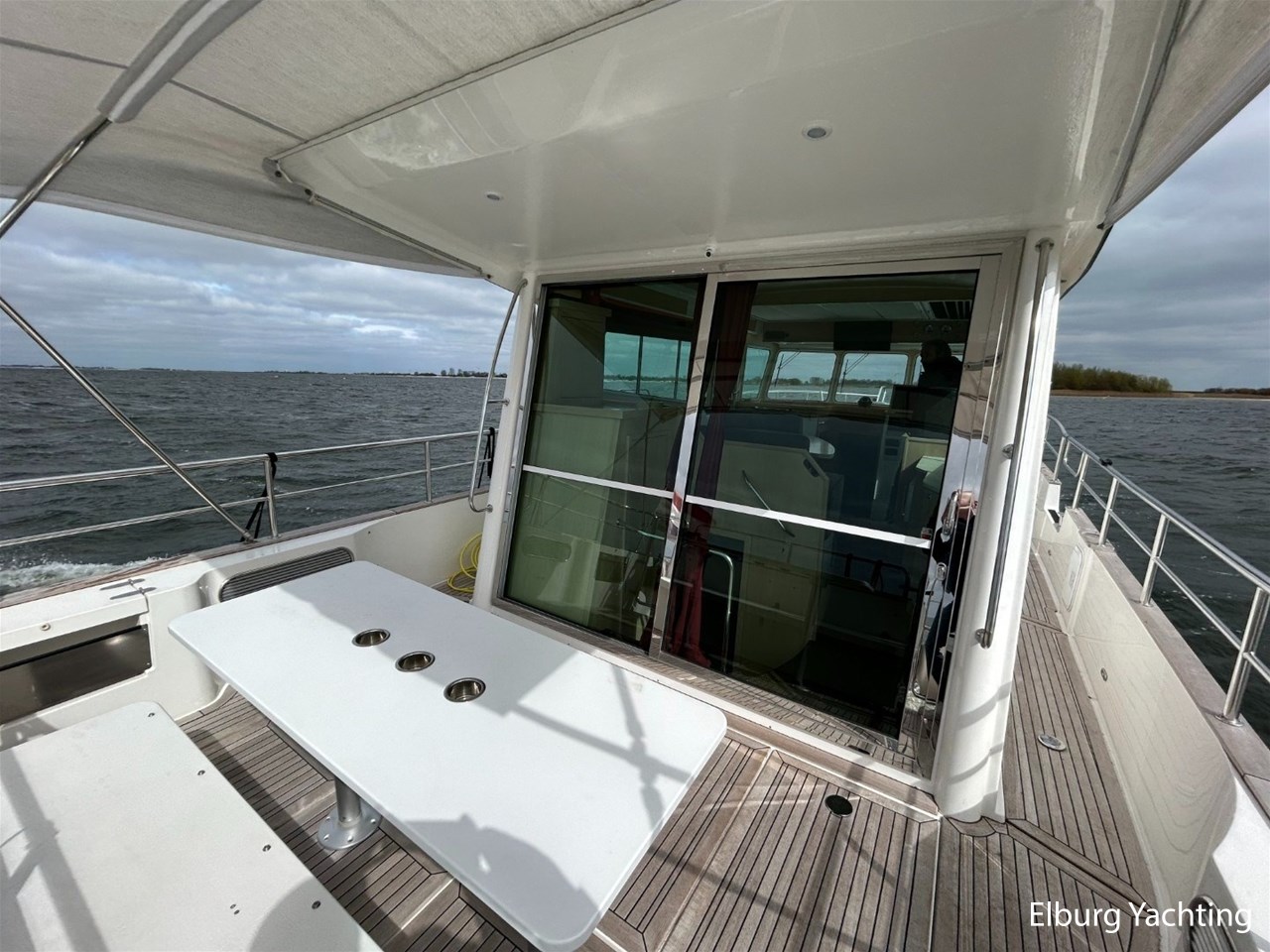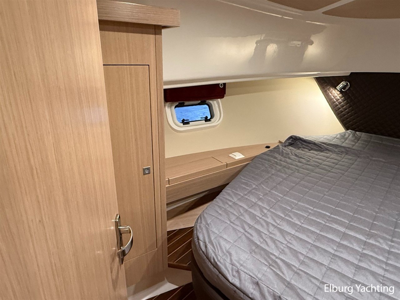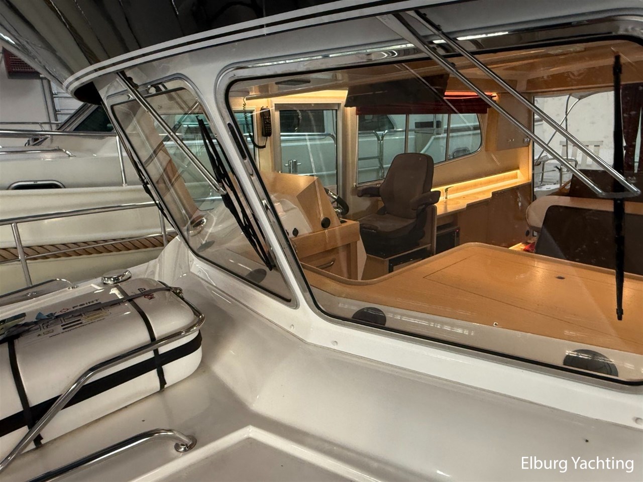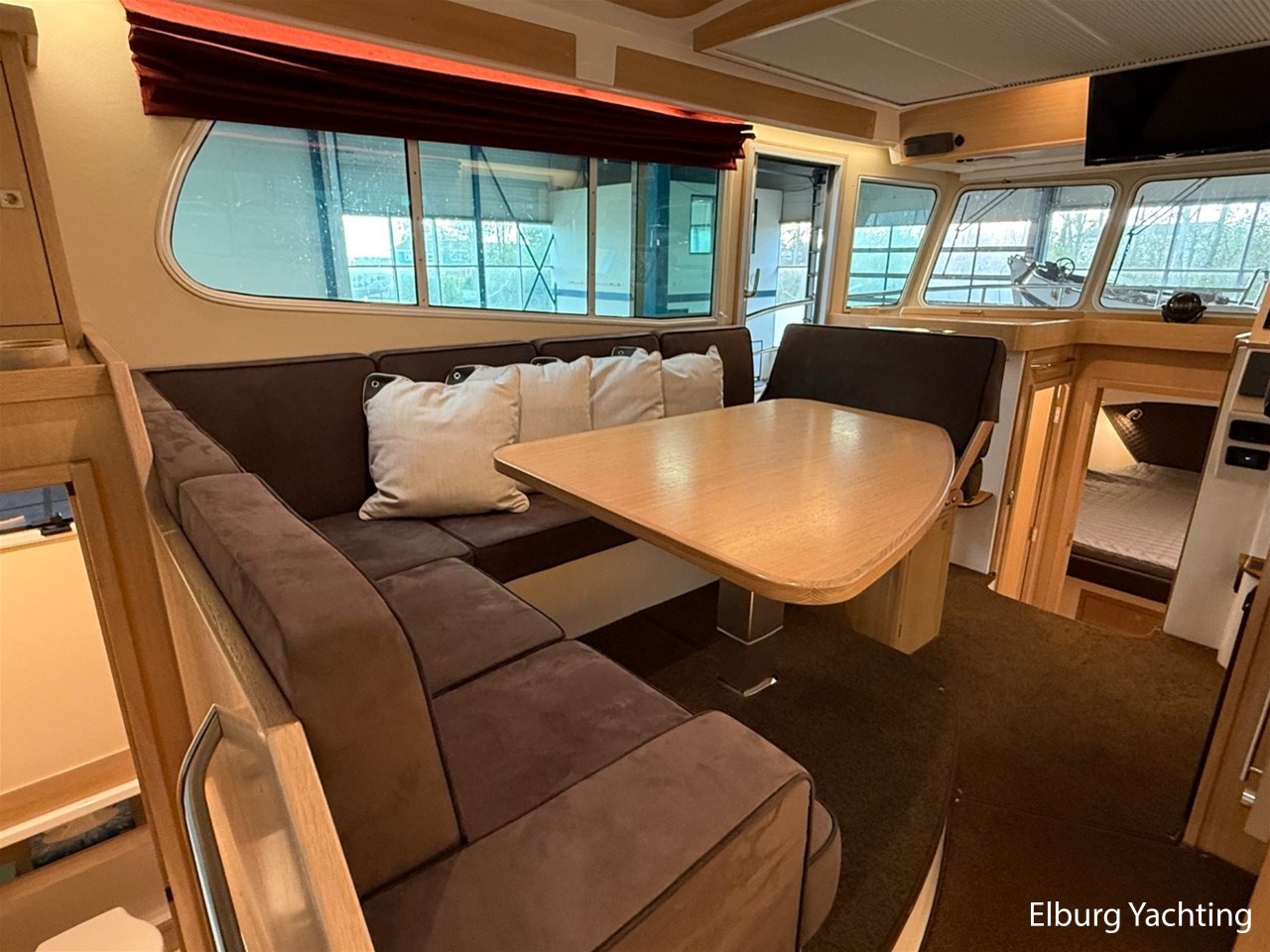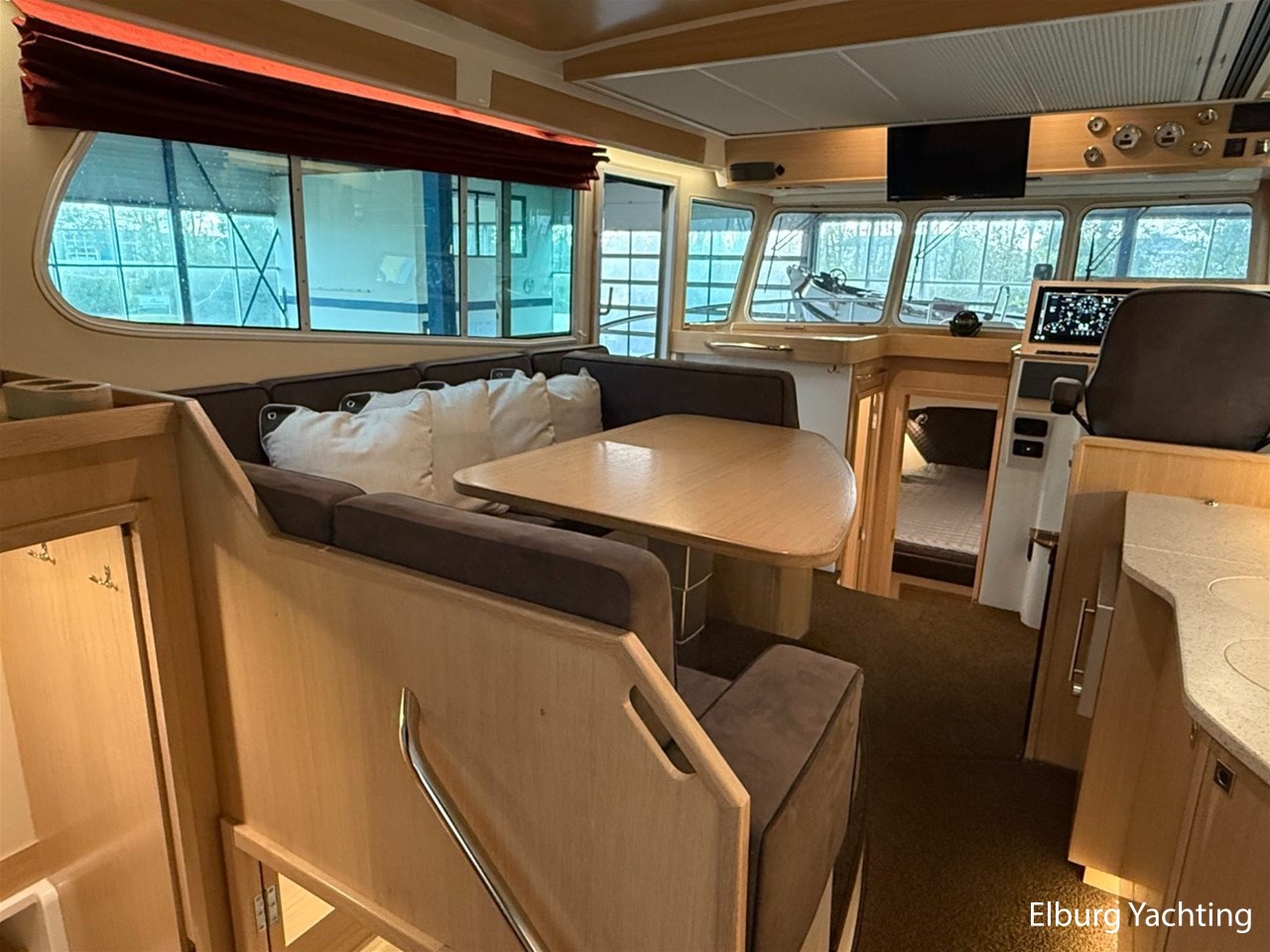 Sporty and highly seaworthy Nord Star Patrol 42 offered by its first owner. This fully equipped Scandinavian Nord Star is a true quality yacht with luxurious features. Among other things, she is equipped with a teak deck all around + swimming platform with double stainless steel guardrails with railings, fender holders, electric sunroof and large spotlights on the wheelhouse. With seaworthiness in mind, the wheelhouse is equipped with negative windscreen angles, allowing spray to fall downwards in rough seas and thus ensuring good visibility. The wheelhouse is easily accessible from the spacious open cockpit with fixed bench, cockpit tent and cosy cockpit table via the stainless steel sliding doors. The wheelhouse is very efficiently laid out, with a spacious and, above all, very cosy dinette with a lowerable table (which can also be used as a bed), TV + stereo, galley with double sink, induction hob, combi oven and worktop, and, of course, the well-organised helm on the starboard side. The wheelhouse is easily accessible on both sides via the side doors from the gangways, which is very practical when mooring and unmooring. The forward cabin is equipped with a beautiful freestanding double bed and nearby sanitary facilities (separate toilet and shower). The aft cabin is accessible from the rear of the wheelhouse and has a spacious double bed amidships and a nearby toilet with washbasin.