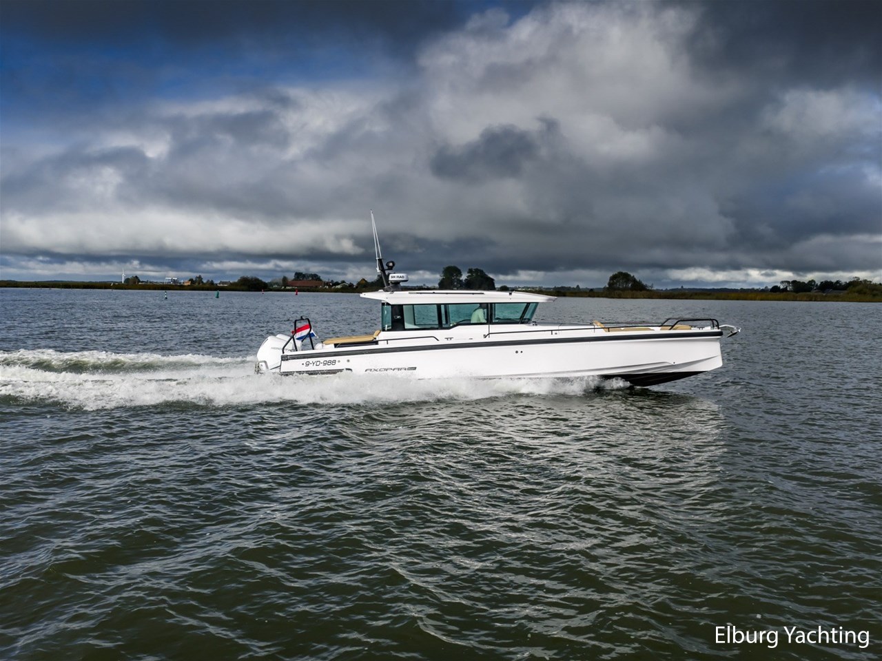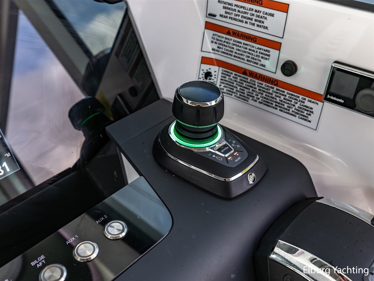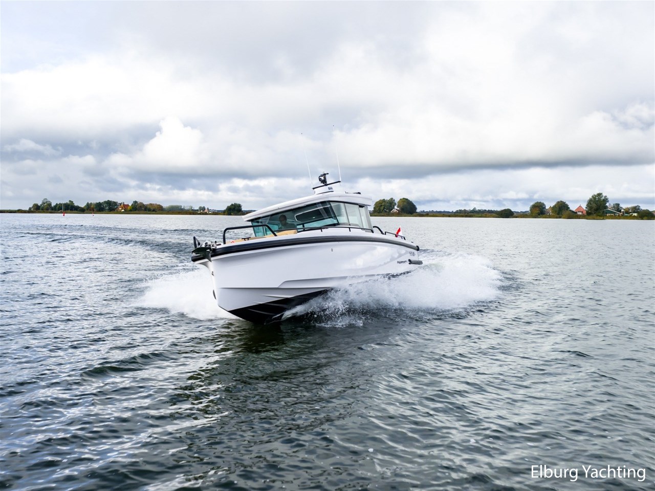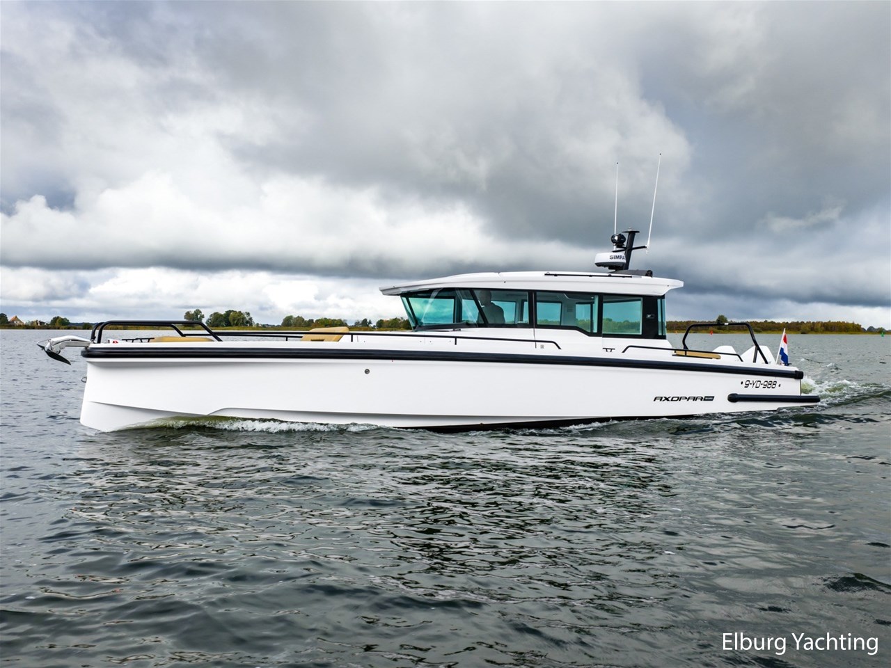 Deze Axopar XC Cross Cabin is een veelzijdig en stoer gelijnd jacht. Dankzij haar V-Stepped romp in combinatie met de Joystick Piloting vertoont ze mooi vaargedrag op groter water met een hogere topsnelheid en is ze erg gemakkelijk te manoeuvreren. Verder is ze voorzien van een dubbele cabine en een natte cel. Het jacht is fraai gestyled middels het Brabus Line Trim Package en geeft een luxe en fraai afgewerkte indruk. Deze Axopar wordt voortgestuwd door twee 300 pk sterke Mercury Verado motoren. Rondom is eenvoudig bewegen middels de gangboorden en de twee te openen zijdeuren in het stuurhuis. Voor- en achter het stuurhuis zijn twee royale zonnebedden gesitueerd. Het stuurhuis is rondom voorzien van ramen waardoor er een optimaal 360 graden zichtveld is. Tevens is het stuurhuis voorzien van een gezellige dinette met koelkast onder de vaar- / meevaarstoel. Dit jacht is een sportieve allrounder en wordt onder andere geleverd met: Led-verlichting rondom, Webasto elektrisch schuifdak, vergrootte kastruimte voorhut, zonnebed voordek met bergruimte, Webasto verwarming, raamcovers, Dometic koelkast, zoeklicht met afstandsbediening, buitendouche met warm water, onderwaterverlichting, Waterski-beugel, Audiosysteem met 5 speakers binnen en 4 speakers buiten, Toiletruimte met douche en hoezen voor de buitenkussens. Voor vragen en/of het maken van een afspraak bent u 7 dagen per week van harte welkom bij Elburg Yachting.