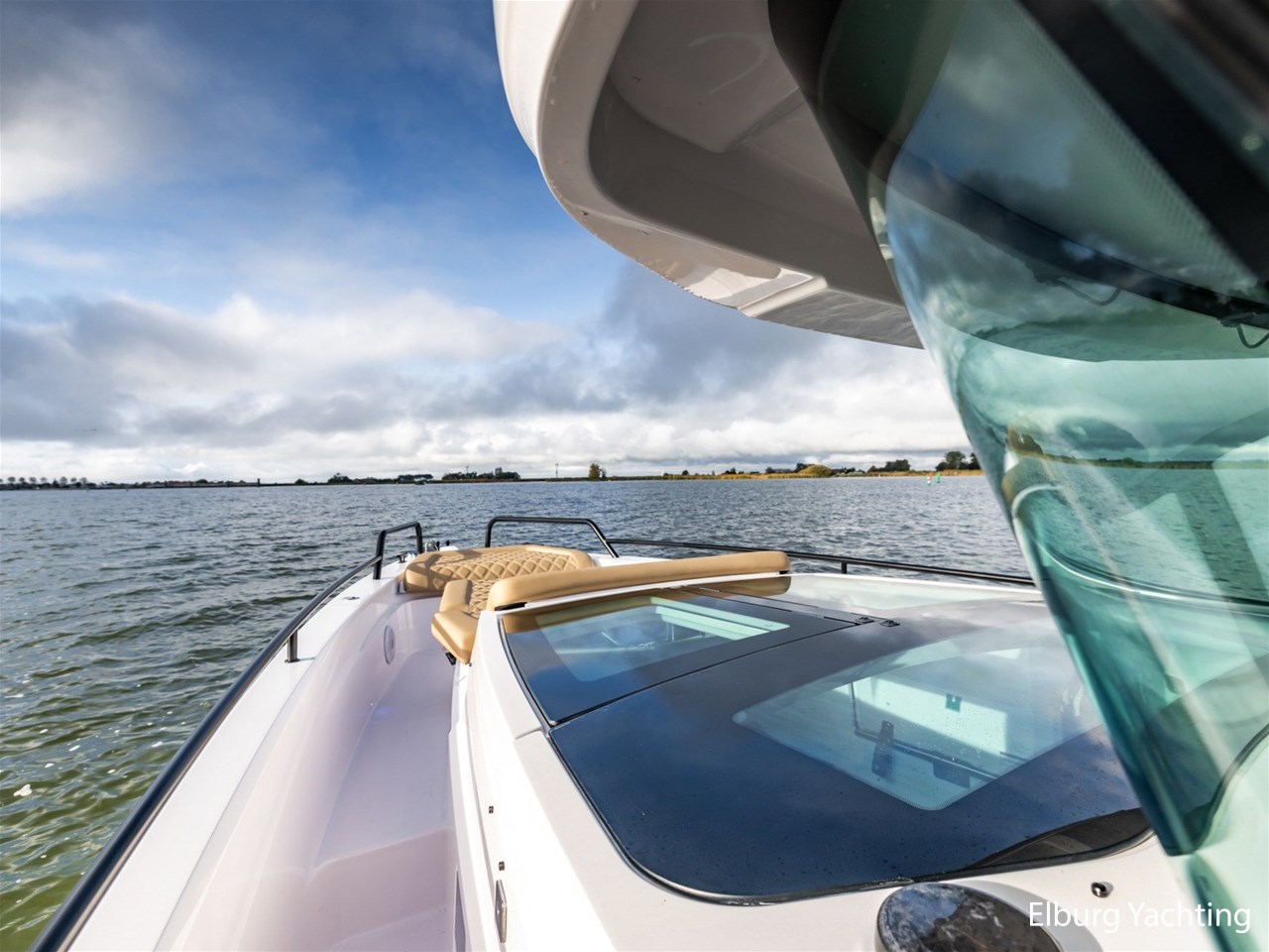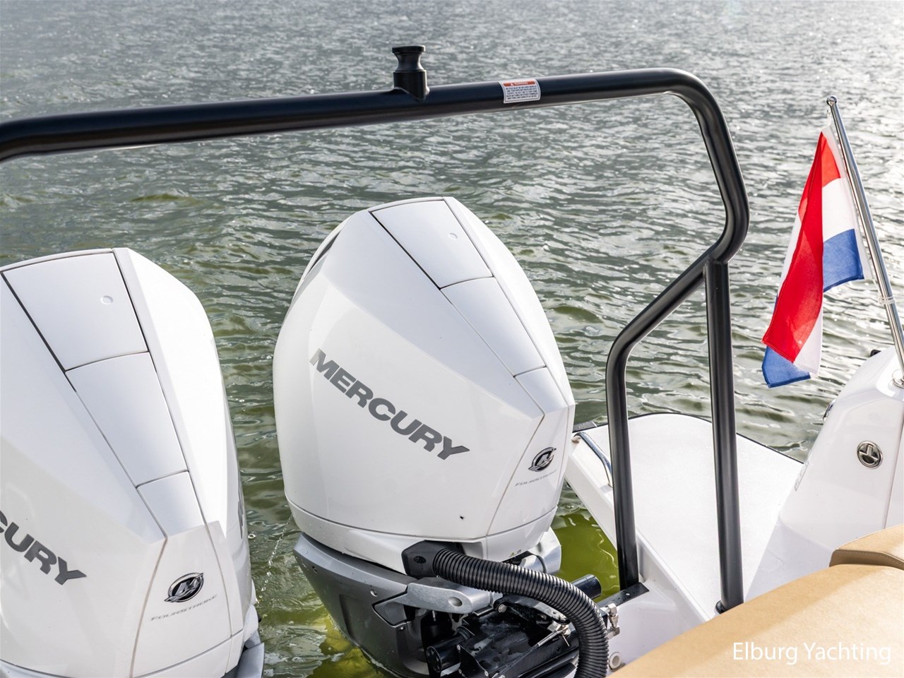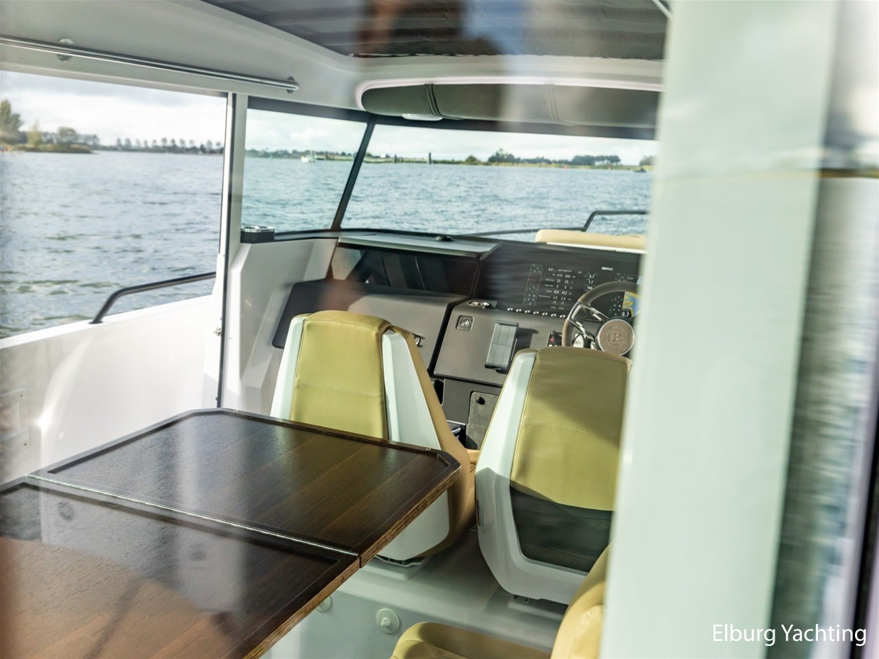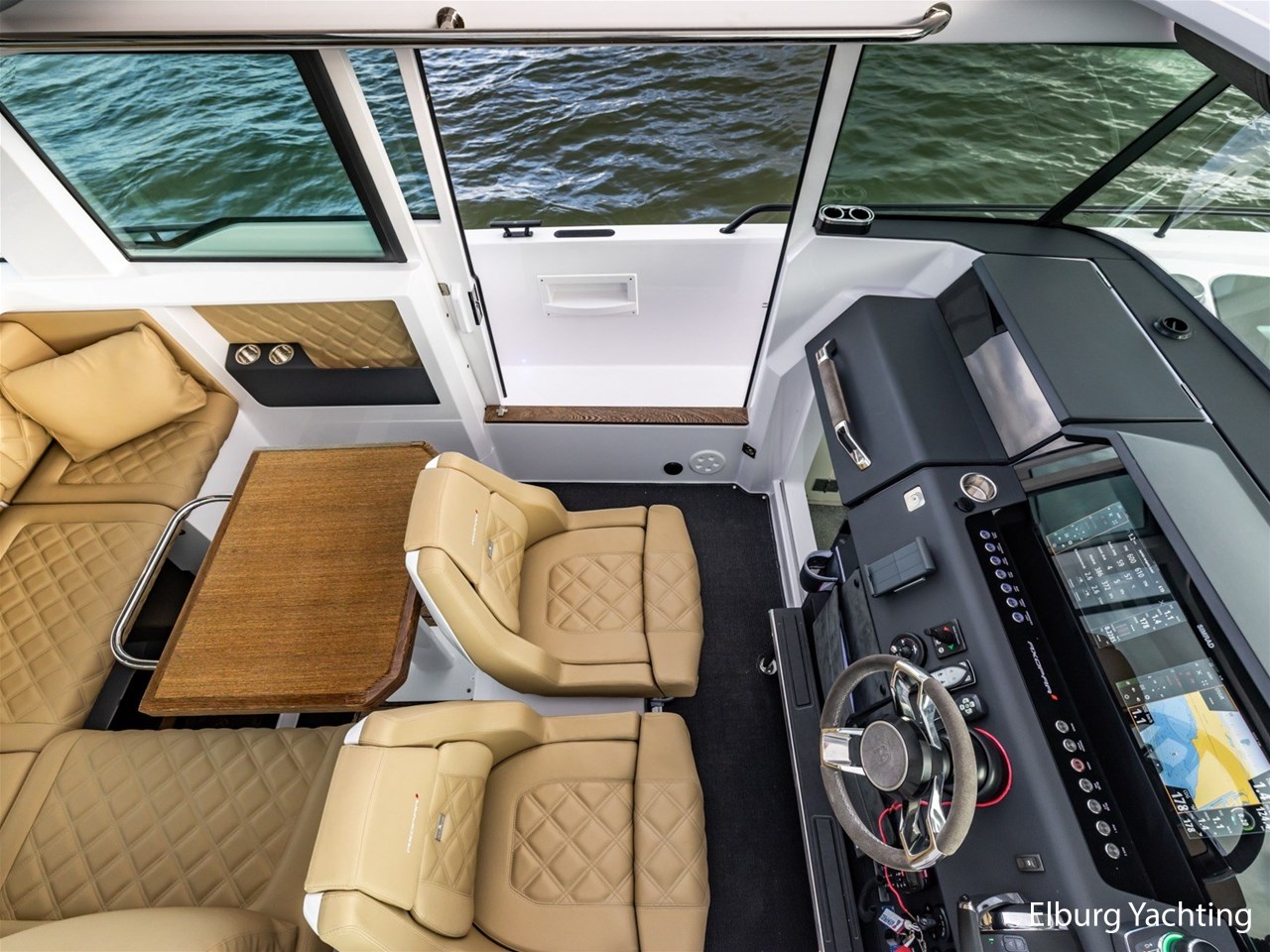 Deze Axopar XC Cross Cabin is een veelzijdig en stoer gelijnd jacht. Dankzij haar V-Stepped romp in combinatie met de Joystick Piloting vertoont ze mooi vaargedrag op groter water met een hogere topsnelheid en is ze erg gemakkelijk te manoeuvreren. Verder is ze voorzien van een dubbele cabine en een natte cel. Het jacht is fraai gestyled middels het Brabus Line Trim Package en geeft een luxe en fraai afgewerkte indruk. Deze Axopar wordt voortgestuwd door twee 300 pk sterke Mercury Verado motoren. Rondom is eenvoudig bewegen middels de gangboorden en de twee te openen zijdeuren in het stuurhuis. Voor- en achter het stuurhuis zijn twee royale zonnebedden gesitueerd. Het stuurhuis is rondom voorzien van ramen waardoor er een optimaal 360 graden zichtveld is. Tevens is het stuurhuis voorzien van een gezellige dinette met koelkast onder de vaar- / meevaarstoel. Dit jacht is een sportieve allrounder en wordt onder andere geleverd met: Led-verlichting rondom, Webasto elektrisch schuifdak, vergrootte kastruimte voorhut, zonnebed voordek met bergruimte, Webasto verwarming, raamcovers, Dometic koelkast, zoeklicht met afstandsbediening, buitendouche met warm water, onderwaterverlichting, Waterski-beugel, Audiosysteem met 5 speakers binnen en 4 speakers buiten, Toiletruimte met douche en hoezen voor de buitenkussens. Voor vragen en/of het maken van een afspraak bent u 7 dagen per week van harte welkom bij Elburg Yachting.