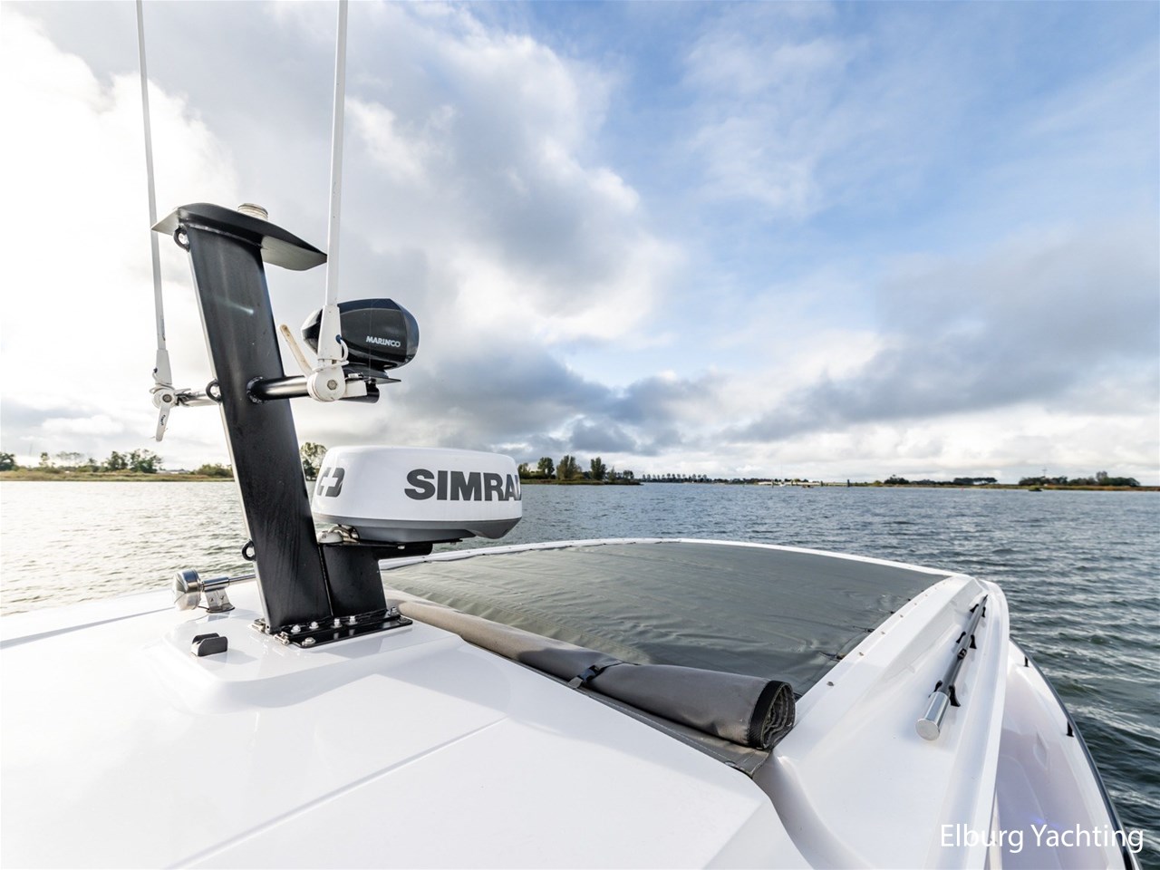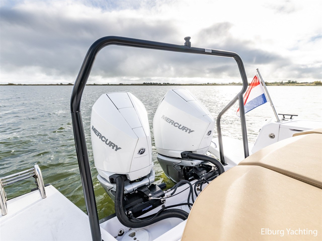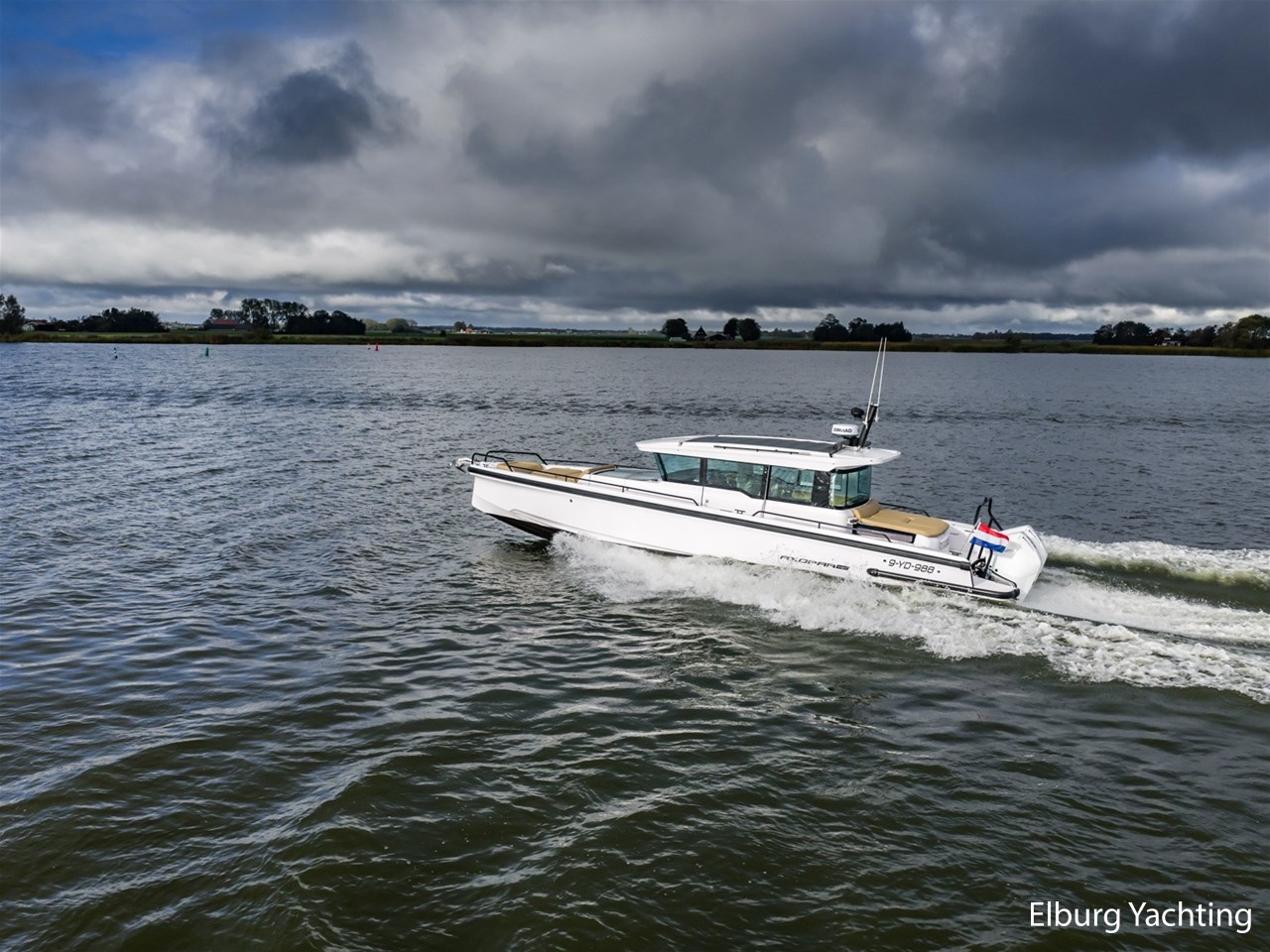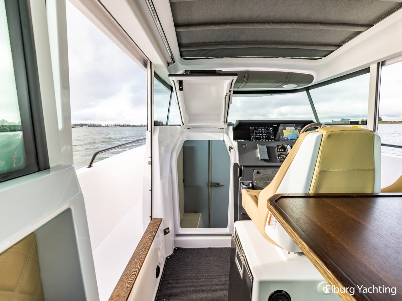 Deze Axopar XC Cross Cabin is een veelzijdig en stoer gelijnd jacht. Dankzij haar V-Stepped romp in combinatie met de Joystick Piloting vertoont ze mooi vaargedrag op groter water met een hogere topsnelheid en is ze erg gemakkelijk te manoeuvreren. Verder is ze voorzien van een dubbele cabine en een natte cel. Het jacht is fraai gestyled middels het Brabus Line Trim Package en geeft een luxe en fraai afgewerkte indruk. Deze Axopar wordt voortgestuwd door twee 300 pk sterke Mercury Verado motoren. Rondom is eenvoudig bewegen middels de gangboorden en de twee te openen zijdeuren in het stuurhuis. Voor- en achter het stuurhuis zijn twee royale zonnebedden gesitueerd. Het stuurhuis is rondom voorzien van ramen waardoor er een optimaal 360 graden zichtveld is. Tevens is het stuurhuis voorzien van een gezellige dinette met koelkast onder de vaar- / meevaarstoel. Dit jacht is een sportieve allrounder en wordt onder andere geleverd met: Led-verlichting rondom, Webasto elektrisch schuifdak, vergrootte kastruimte voorhut, zonnebed voordek met bergruimte, Webasto verwarming, raamcovers, Dometic koelkast, zoeklicht met afstandsbediening, buitendouche met warm water, onderwaterverlichting, Waterski-beugel, Audiosysteem met 5 speakers binnen en 4 speakers buiten, Toiletruimte met douche en hoezen voor de buitenkussens. Voor vragen en/of het maken van een afspraak bent u 7 dagen per week van harte welkom bij Elburg Yachting.
