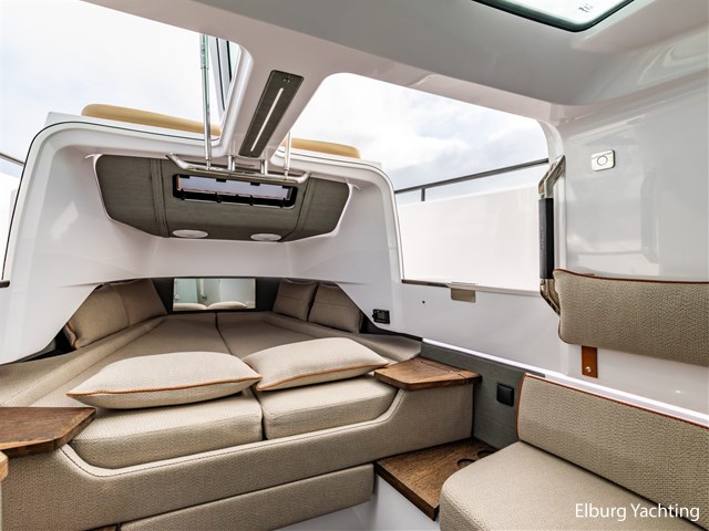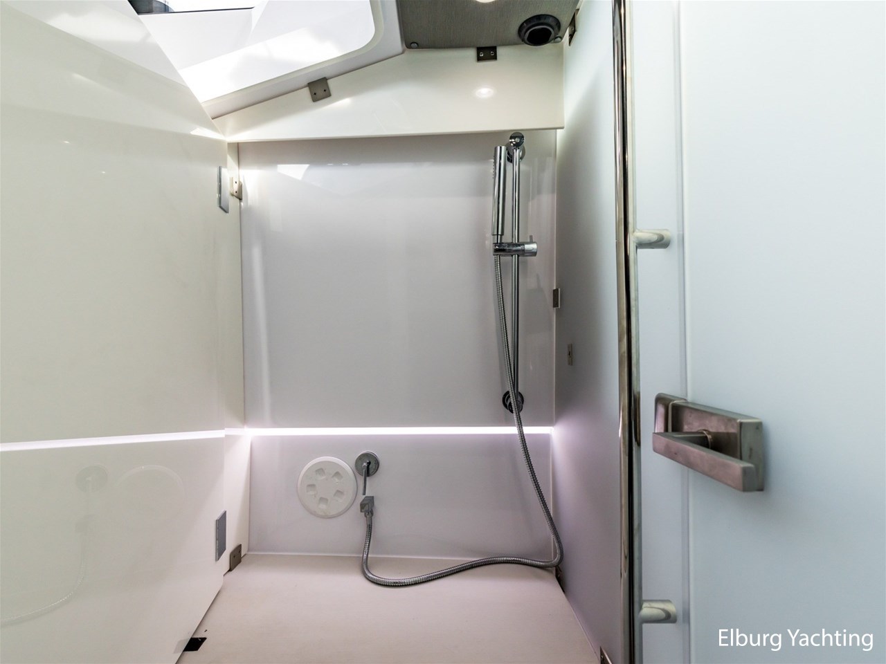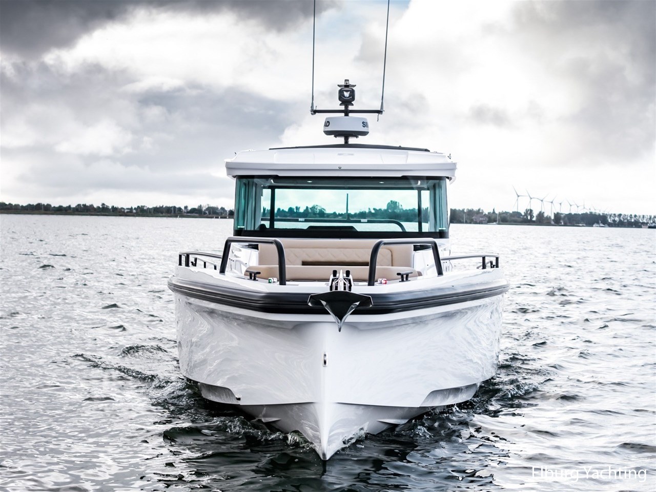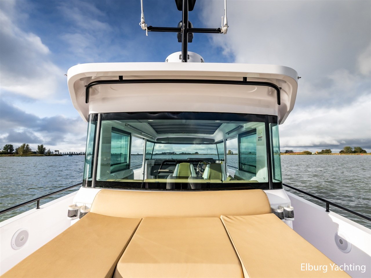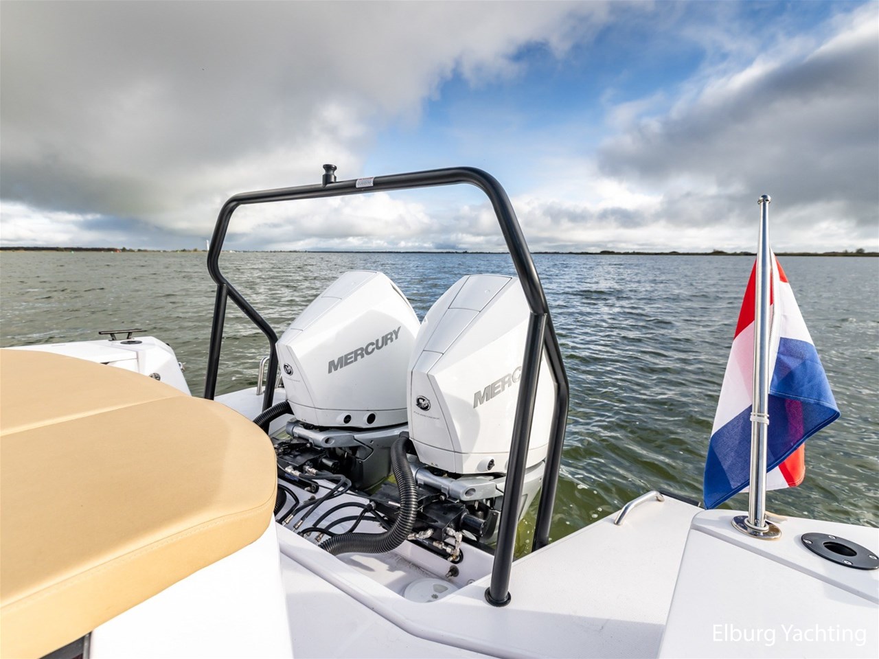 Deze Axopar XC Cross Cabin is een veelzijdig en stoer gelijnd jacht. Dankzij haar V-Stepped romp in combinatie met de Joystick Piloting vertoont ze mooi vaargedrag op groter water met een hogere topsnelheid en is ze erg gemakkelijk te manoeuvreren. Verder is ze voorzien van een dubbele cabine en een natte cel. Het jacht is fraai gestyled middels het Brabus Line Trim Package en geeft een luxe en fraai afgewerkte indruk. Deze Axopar wordt voortgestuwd door twee 300 pk sterke Mercury Verado motoren. Rondom is eenvoudig bewegen middels de gangboorden en de twee te openen zijdeuren in het stuurhuis. Voor- en achter het stuurhuis zijn twee royale zonnebedden gesitueerd. Het stuurhuis is rondom voorzien van ramen waardoor er een optimaal 360 graden zichtveld is. Tevens is het stuurhuis voorzien van een gezellige dinette met koelkast onder de vaar- / meevaarstoel. Dit jacht is een sportieve allrounder en wordt onder andere geleverd met: Led-verlichting rondom, Webasto elektrisch schuifdak, vergrootte kastruimte voorhut, zonnebed voordek met bergruimte, Webasto verwarming, raamcovers, Dometic koelkast, zoeklicht met afstandsbediening, buitendouche met warm water, onderwaterverlichting, Waterski-beugel, Audiosysteem met 5 speakers binnen en 4 speakers buiten, Toiletruimte met douche en hoezen voor de buitenkussens. Voor vragen en/of het maken van een afspraak bent u 7 dagen per week van harte welkom bij Elburg Yachting.