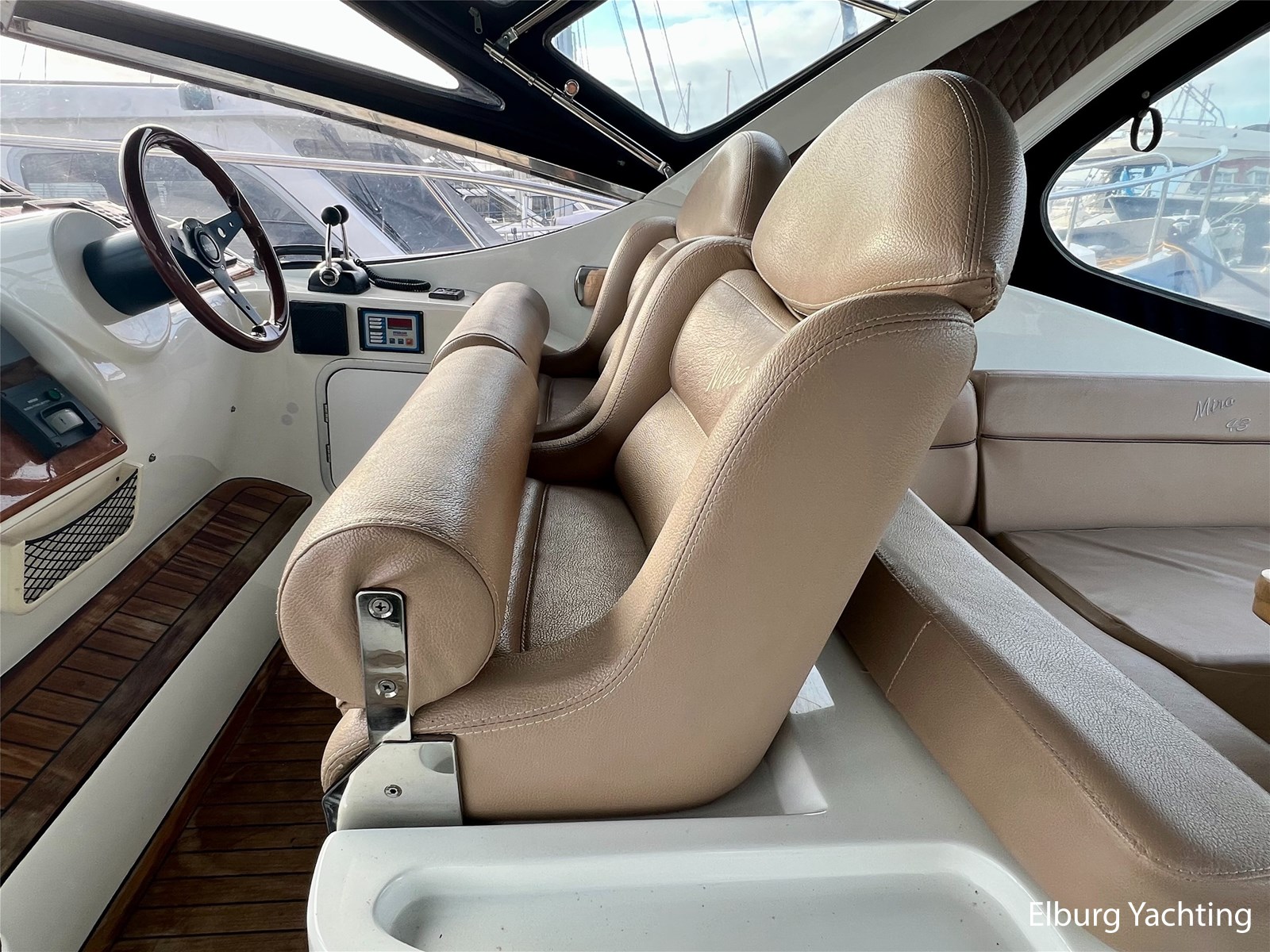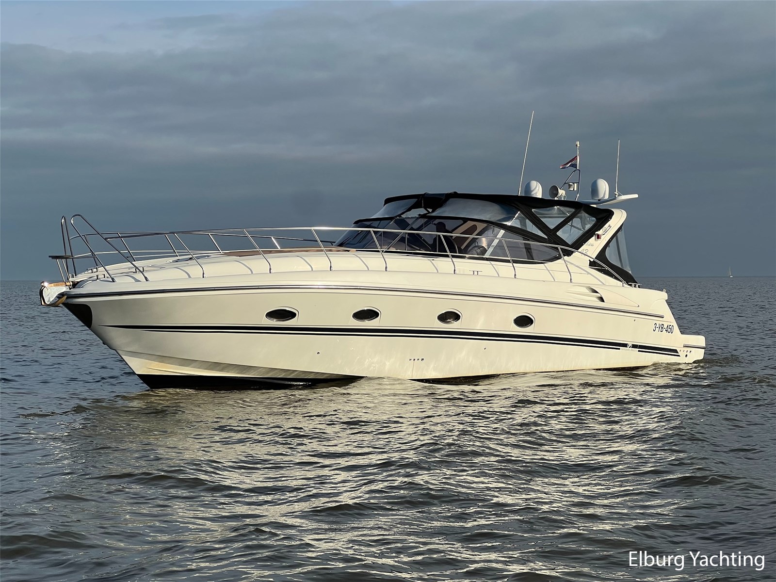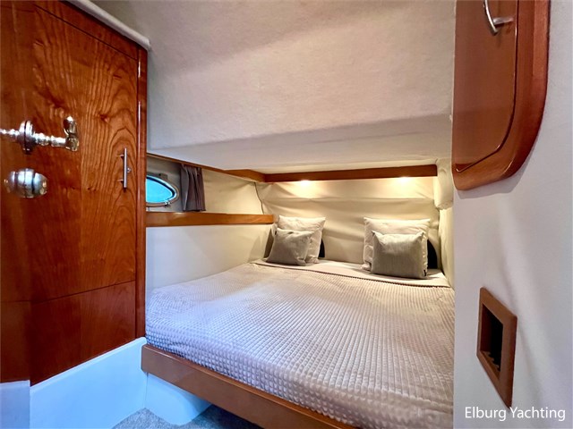 Italiaans design in combinatie met veel praktische ruimte kenmerkt deze Mira 43 van de werf Innovazione e Progetti uit Italie. Dit jacht is van bouwjaar 2004 en is voorzien van twee krachtige Volvo Penta D6 motoren met elk 350 pk. De aandrijving verloopt via twee Volvo Penta DPH hekdrives, welke in 2025 zijn geserviced. Deze Mira 43 is voorzien van: Volledige tent rondom kuip met uitristbare delen, hydraulisch uitschuifbare gangway met afstandsbediening, groot bergluik in zwemplateau, kuip voorzien van koelkast / spoelkom / radio met speakers, loop naar het voordek via gangboorden maar ook binnendoor via opstap bij stuurstand, afneembaar zonnebed op het voordek, elektrisch/hydraulisch bedienbaar luik naar machinekamer, diverse 230V aansluitpunten door de boot, TV in salon (2025), tapijt delen in het interieur uitneembaar, 2 x bergluik in salonvloer. Verfsysteem onderwaterschip vernieuwd in juli 2025. Dit schip is op afspraak in Nederland te bezichtigen. Wij maken graag met u een afspraak voor een vrijblijvend bezoek aan boord.
