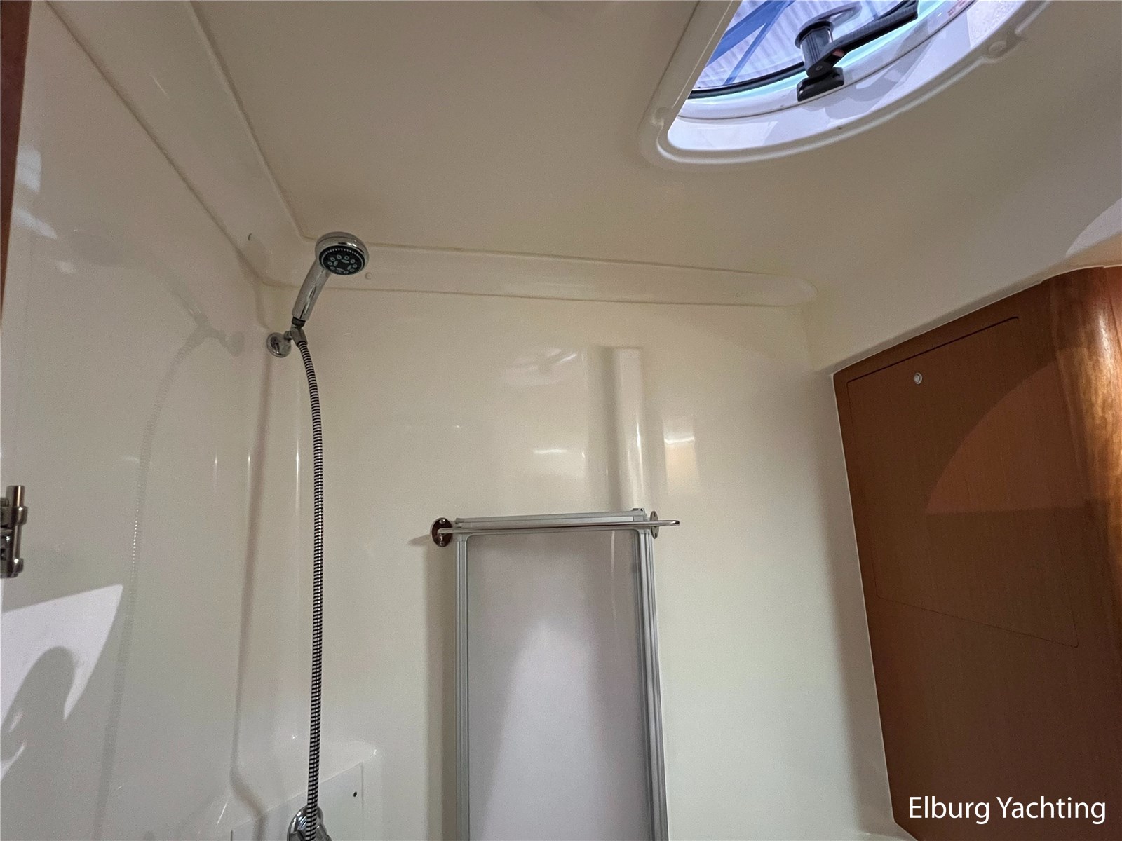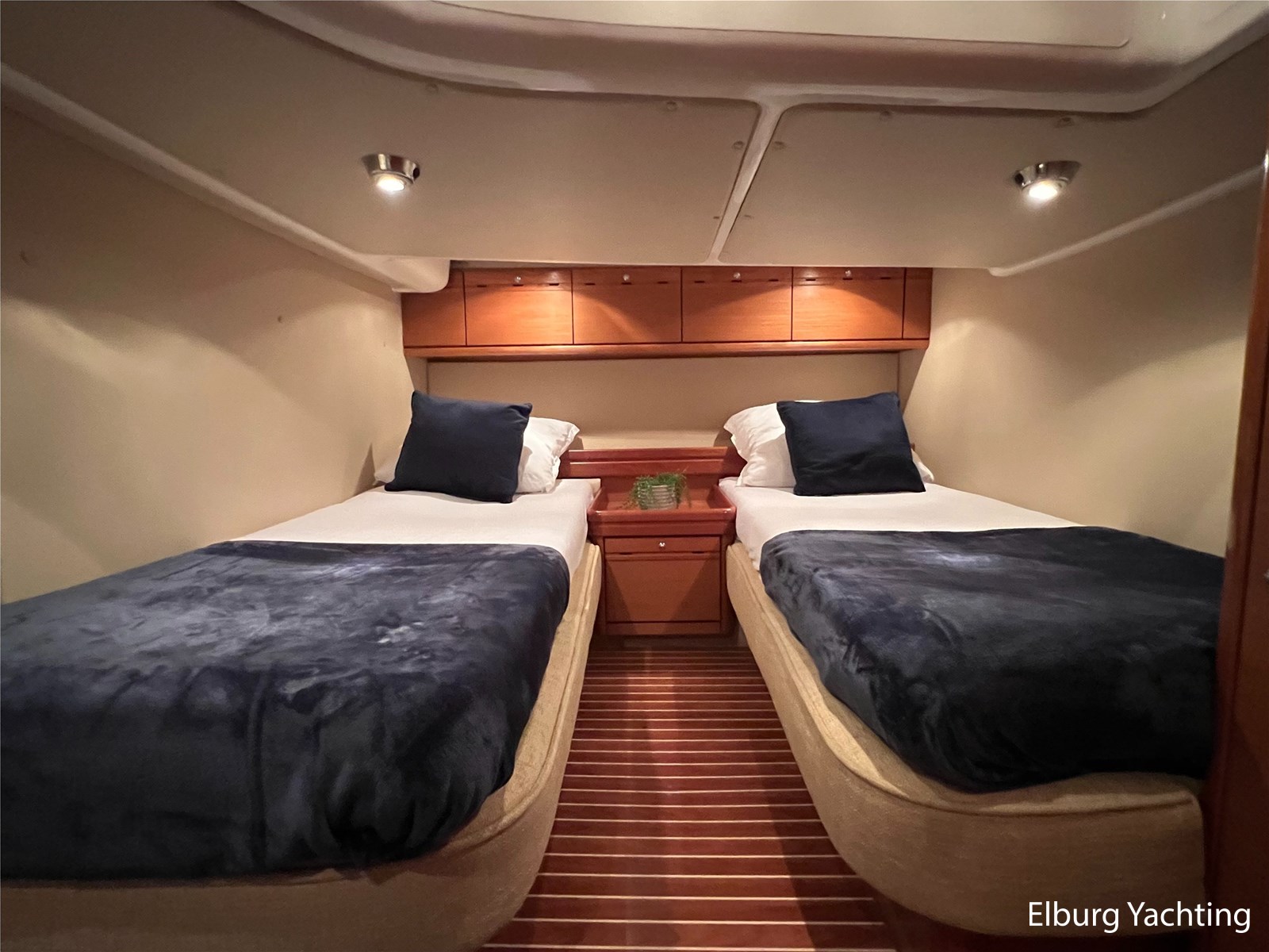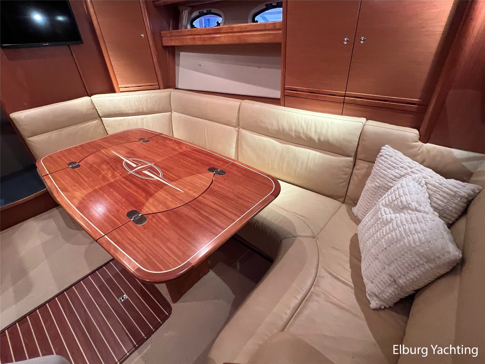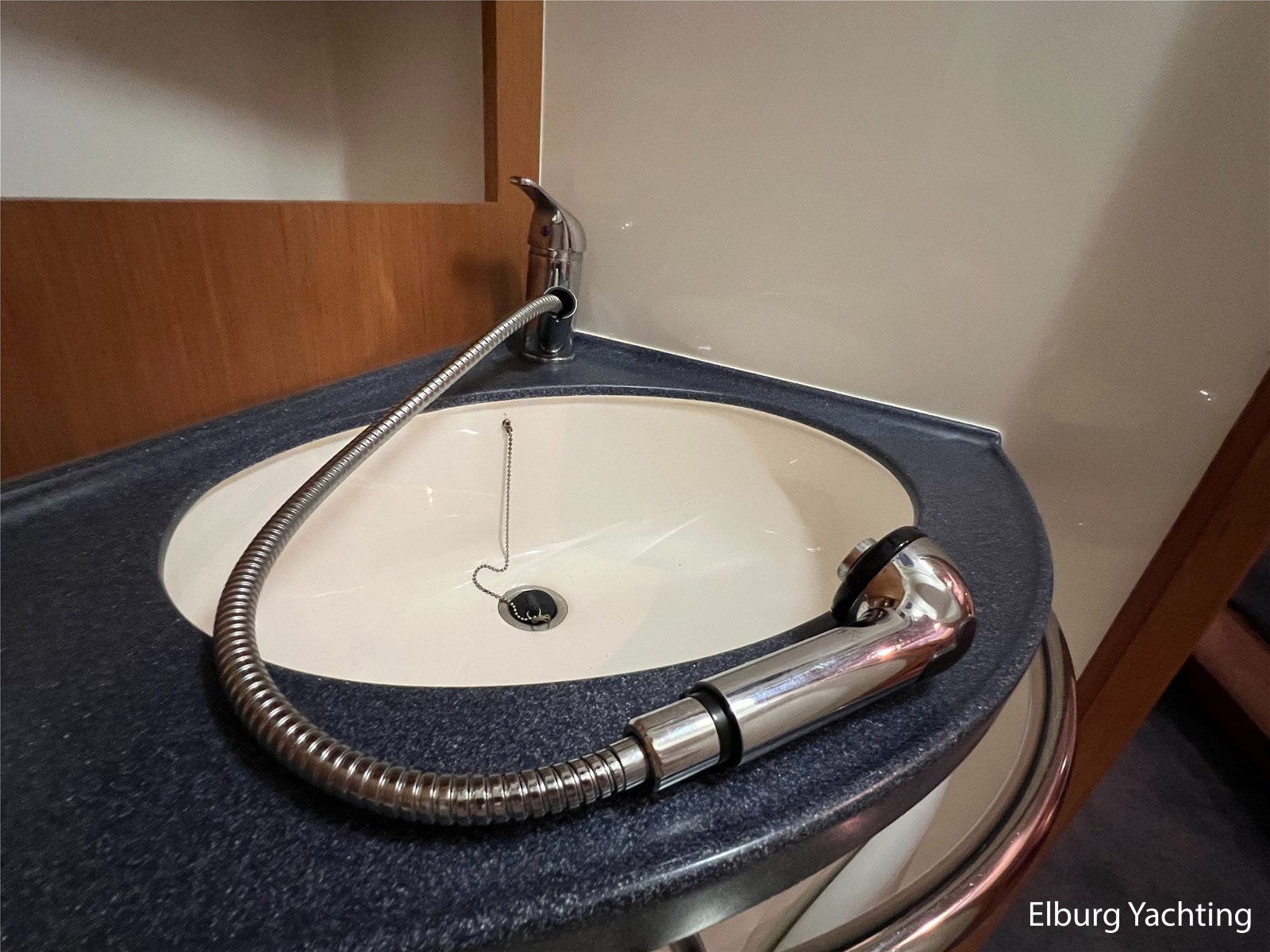 The Bavaria 42 HT Sport combines practical space and good sailing characteristics to be a sporty all-rounder suitable for both inland and open waters. The Bavaria 42 HT is characterized by its fixed superstructure (hardtop) with a large, electrical operated convertible roof, ideal for enjoying good weather or convenient retractable in inclement weather. The entire aft-deck can be closed off with a canopy featuring large removable windows. The hydraulically lowerable swim platform is convenient for bringing a dinghy or for easy entry and exit during a swim. The aft deck features a sunbed with ample storage space underneath. The engine room is accessible from the cockpit via an electrically operated hatch. A passenger bench is positioned facing the sailing direction of travel. The wetbar in the cockpit offers a grill, sink, and refrigerator. The saloon and galley are located below deck. The 2m+ headroom is immediately noticeable and creates a feeling of spaciousness. The forward cabin features a double French bed with its own en-suite bathroom (toilet/shower). A second double cabin is located amidships, also equipped with its own en-suite bathroom. In 2025, various upgrades were carried out, including new antifouling, anodes, life jackets, a wireless headset intercom system, new fenders with covers, stainless steel boat supports (also suitable for a jetski), a Wi-Fi installation, two smart TVs, a Bluetooth radio, custom-made mattresses, and a trickle charger.