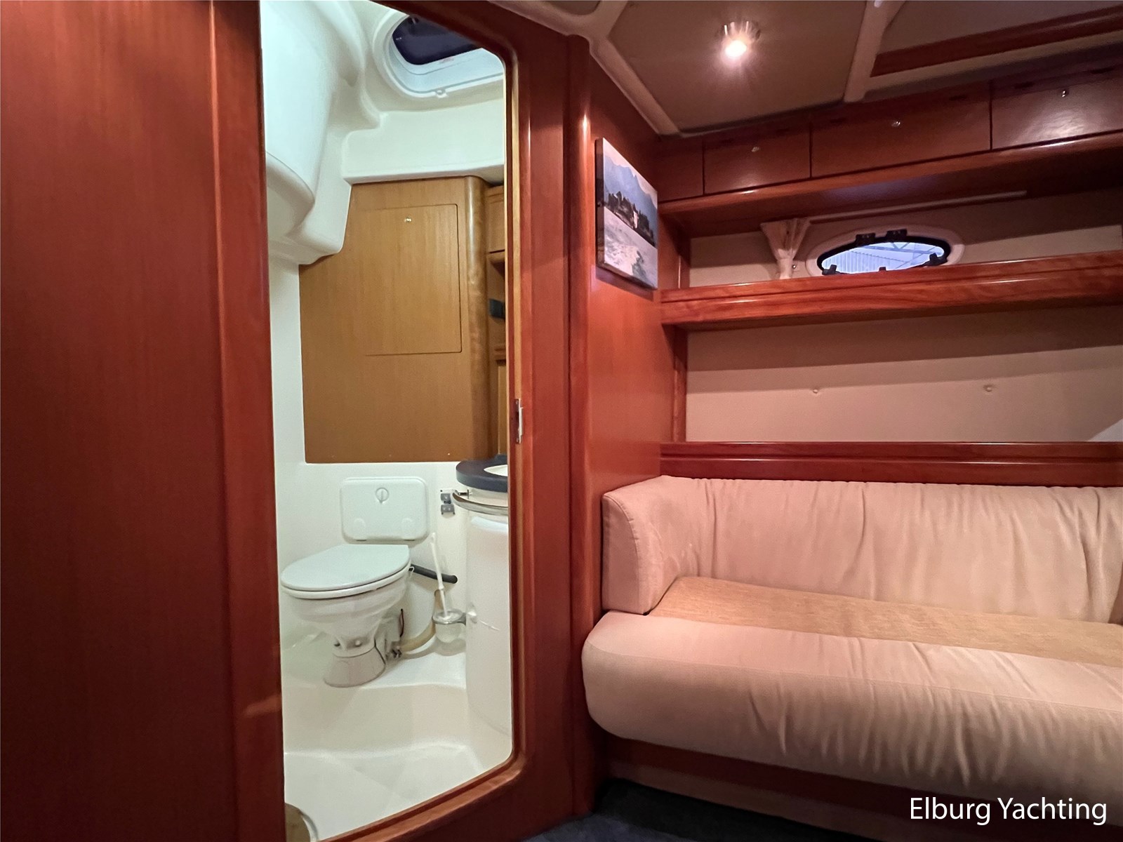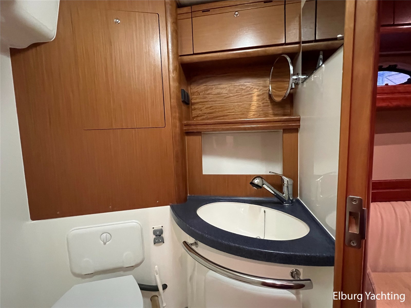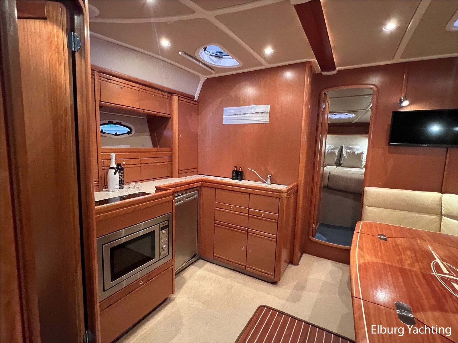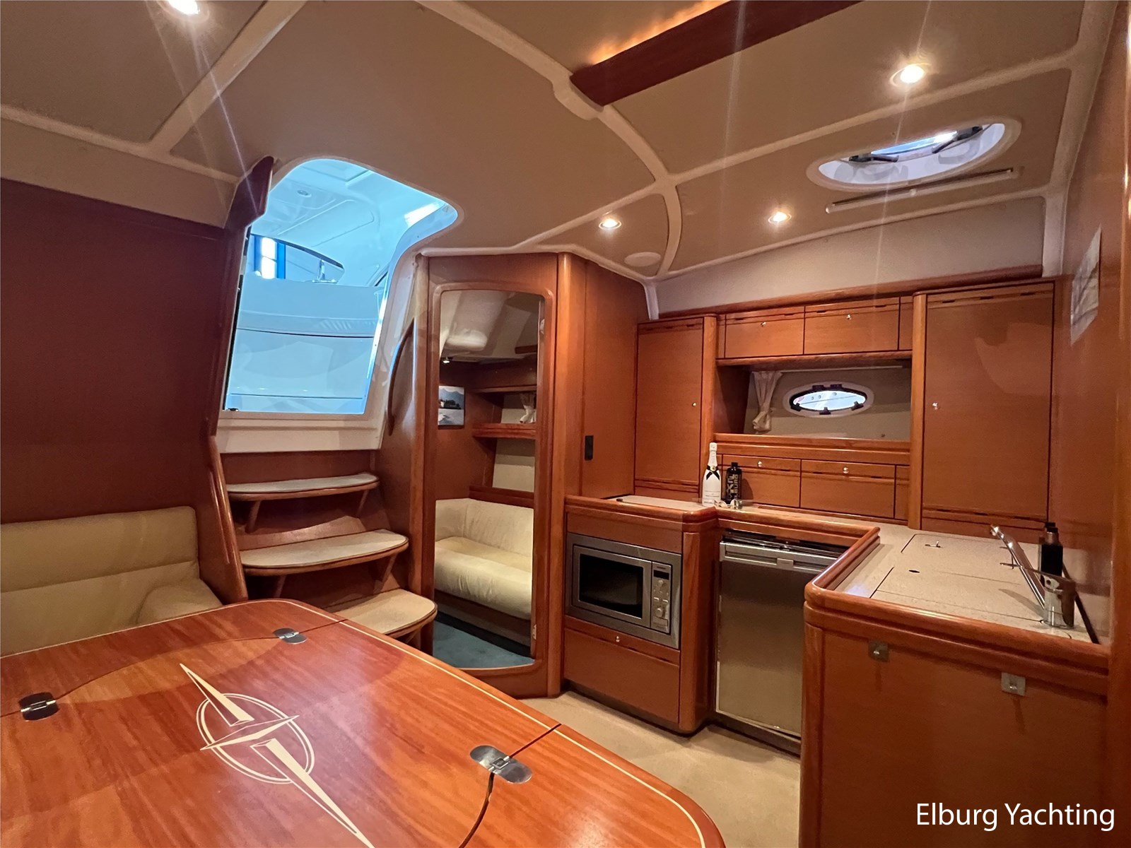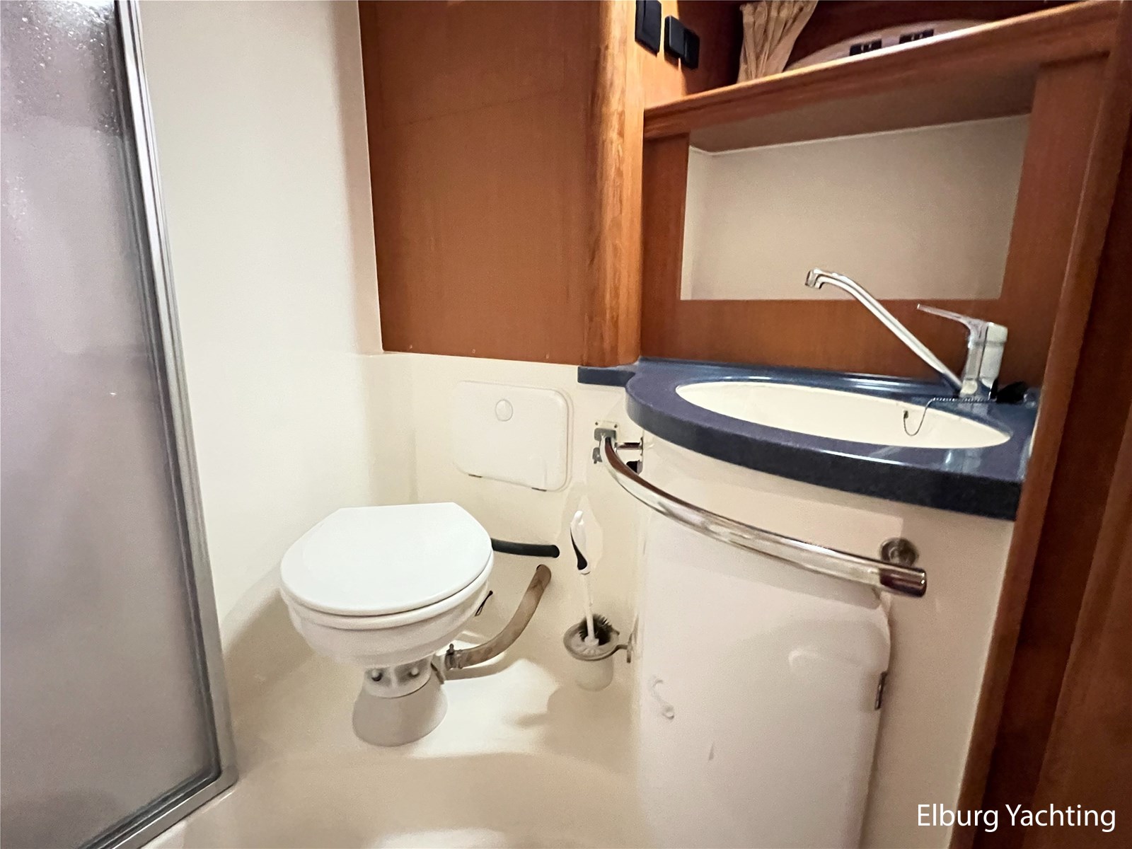 The Bavaria 42 HT Sport combines practical space and good sailing characteristics to be a sporty all-rounder suitable for both inland and open waters. The Bavaria 42 HT is characterized by its fixed superstructure (hardtop) with a large, electrical operated convertible roof, ideal for enjoying good weather or convenient retractable in inclement weather. The entire aft-deck can be closed off with a canopy featuring large removable windows. The hydraulically lowerable swim platform is convenient for bringing a dinghy or for easy entry and exit during a swim. The aft deck features a sunbed with ample storage space underneath. The engine room is accessible from the cockpit via an electrically operated hatch. A passenger bench is positioned facing the sailing direction of travel. The wetbar in the cockpit offers a grill, sink, and refrigerator. The saloon and galley are located below deck. The 2m+ headroom is immediately noticeable and creates a feeling of spaciousness. The forward cabin features a double French bed with its own en-suite bathroom (toilet/shower). A second double cabin is located amidships, also equipped with its own en-suite bathroom. In 2025, various upgrades were carried out, including new antifouling, anodes, life jackets, a wireless headset intercom system, new fenders with covers, stainless steel boat supports (also suitable for a jetski), a Wi-Fi installation, two smart TVs, a Bluetooth radio, custom-made mattresses, and a trickle charger.