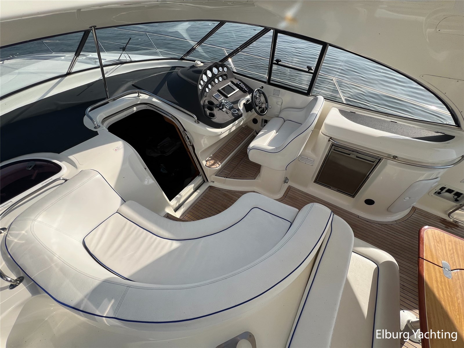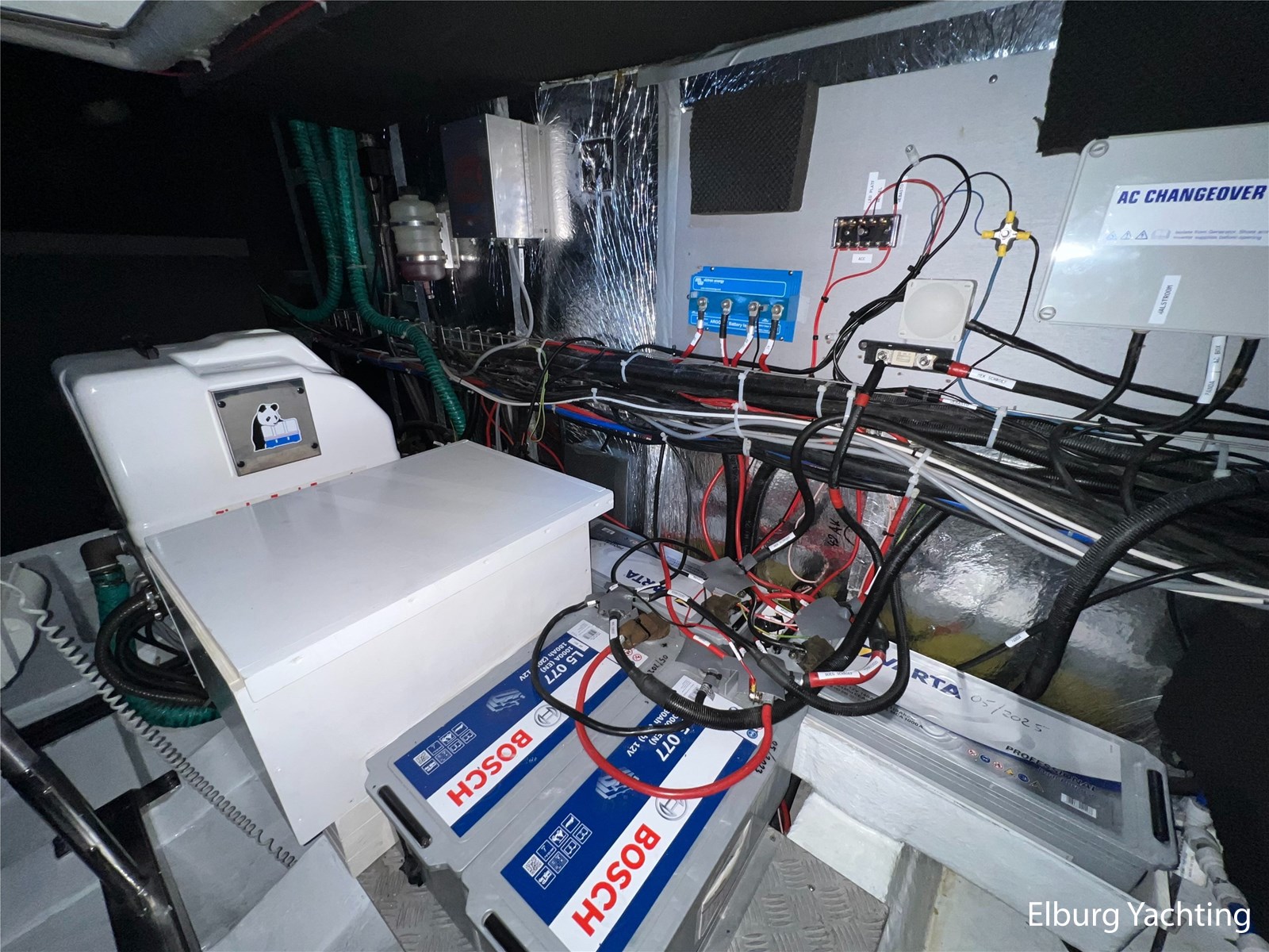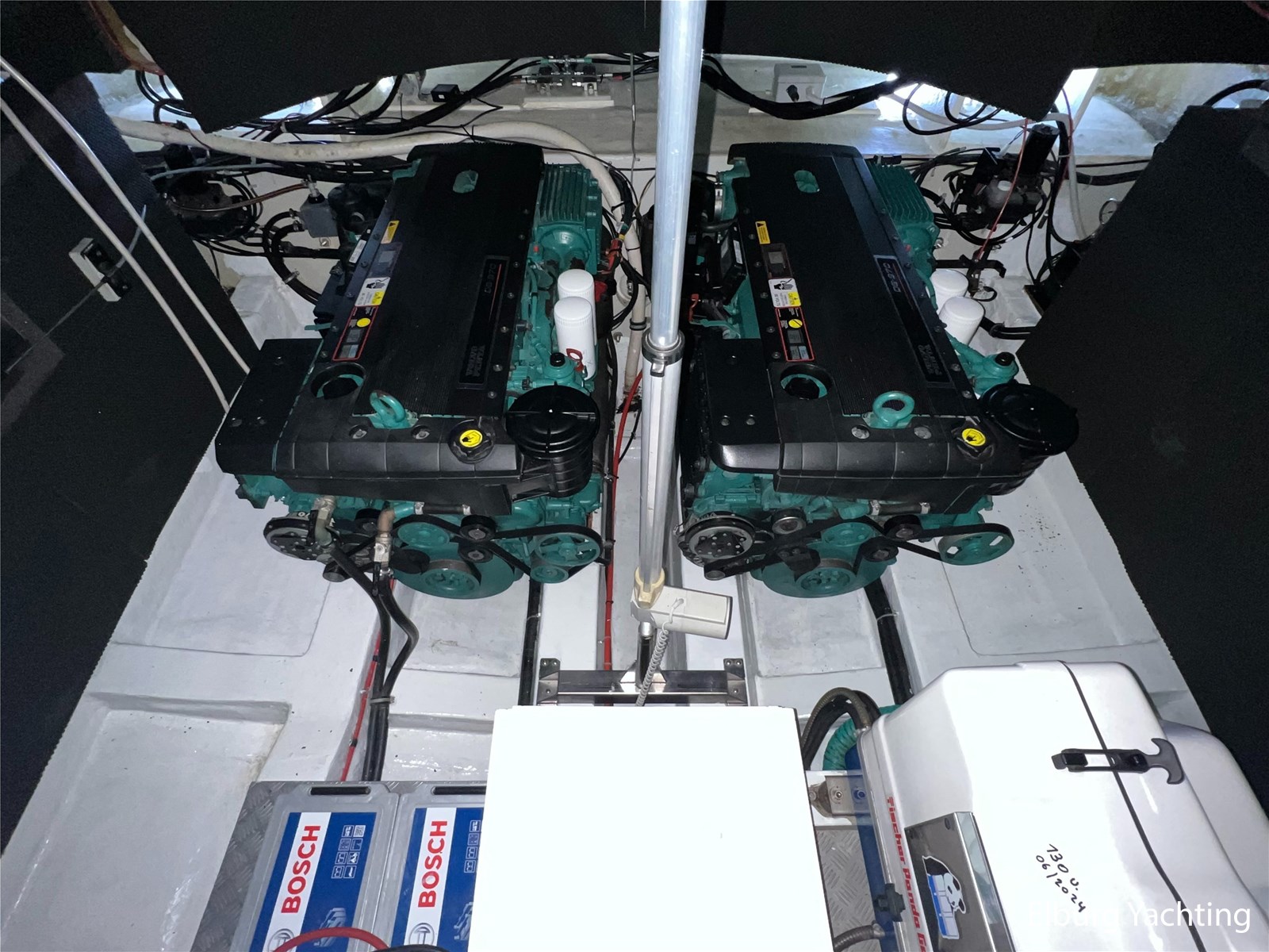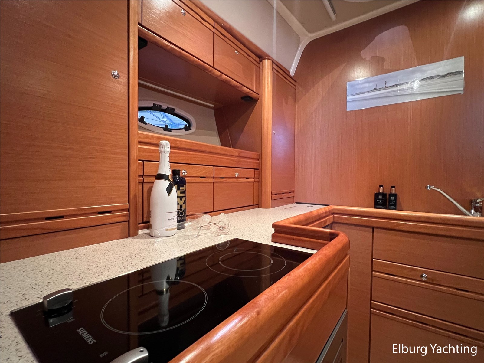 The Bavaria 42 HT Sport combines practical space and good sailing characteristics to be a sporty all-rounder suitable for both inland and open waters. The Bavaria 42 HT is characterized by its fixed superstructure (hardtop) with a large, electrical operated convertible roof, ideal for enjoying good weather or convenient retractable in inclement weather. The entire aft-deck can be closed off with a canopy featuring large removable windows. The hydraulically lowerable swim platform is convenient for bringing a dinghy or for easy entry and exit during a swim. The aft deck features a sunbed with ample storage space underneath. The engine room is accessible from the cockpit via an electrically operated hatch. A passenger bench is positioned facing the sailing direction of travel. The wetbar in the cockpit offers a grill, sink, and refrigerator. The saloon and galley are located below deck. The 2m+ headroom is immediately noticeable and creates a feeling of spaciousness. The forward cabin features a double French bed with its own en-suite bathroom (toilet/shower). A second double cabin is located amidships, also equipped with its own en-suite bathroom. In 2025, various upgrades were carried out, including new antifouling, anodes, life jackets, a wireless headset intercom system, new fenders with covers, stainless steel boat supports (also suitable for a jetski), a Wi-Fi installation, two smart TVs, a Bluetooth radio, custom-made mattresses, and a trickle charger.